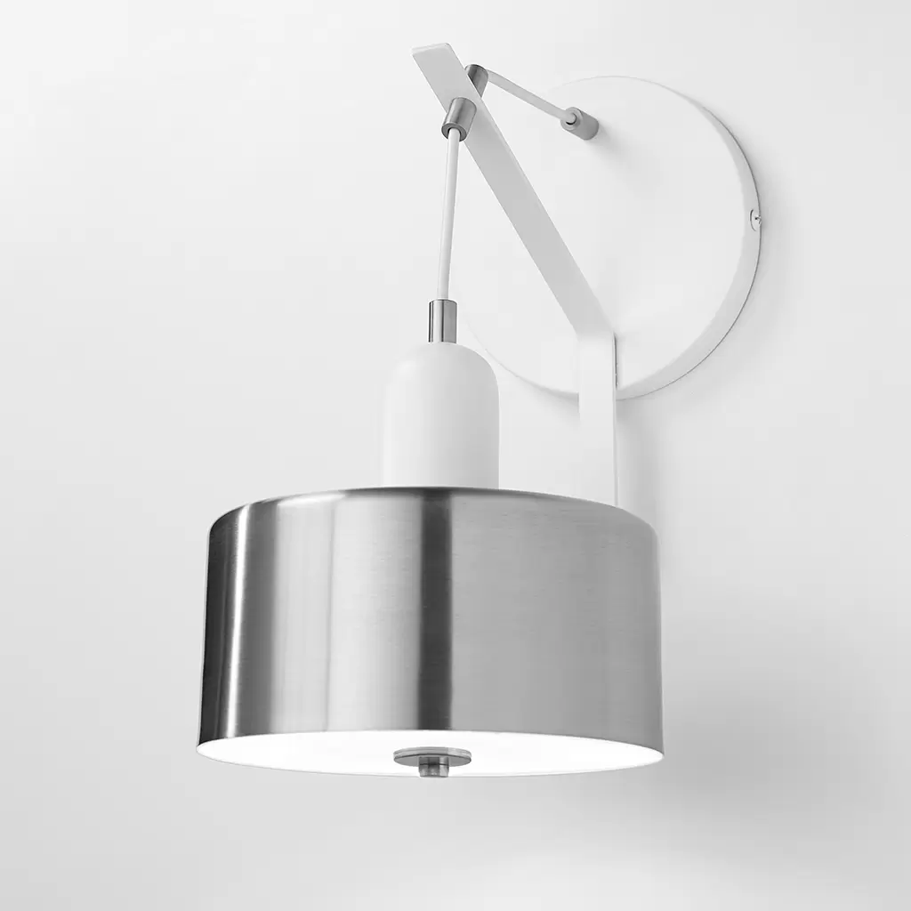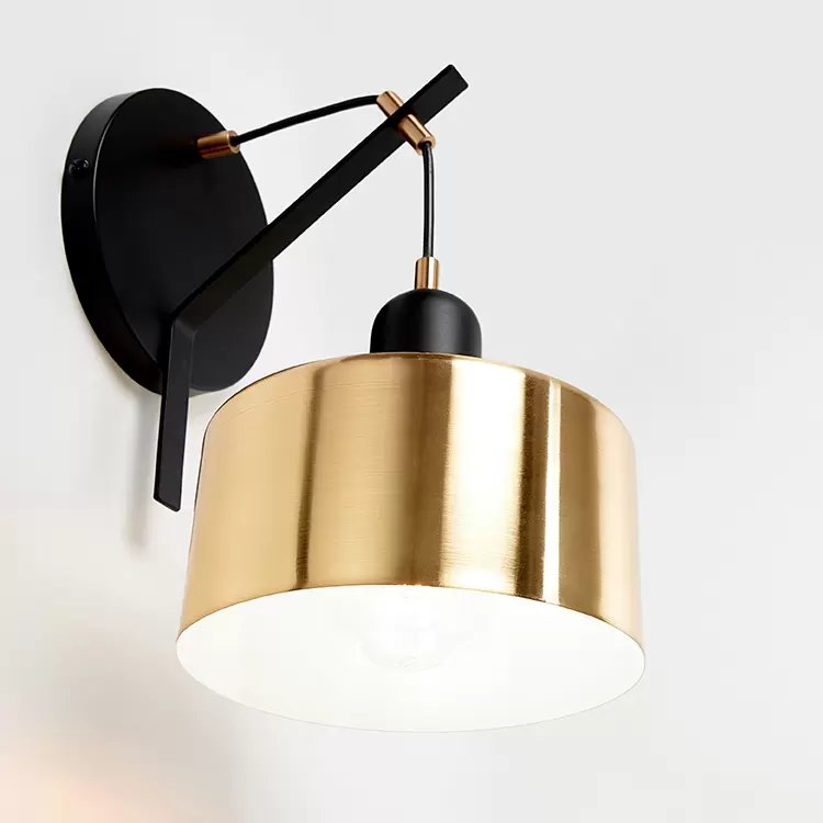 Aplique Acopla es una lámpara de pared disponible en negro o blanco con detalles en bronce o plátil de fácil adaptación a todo tipo de espacio.