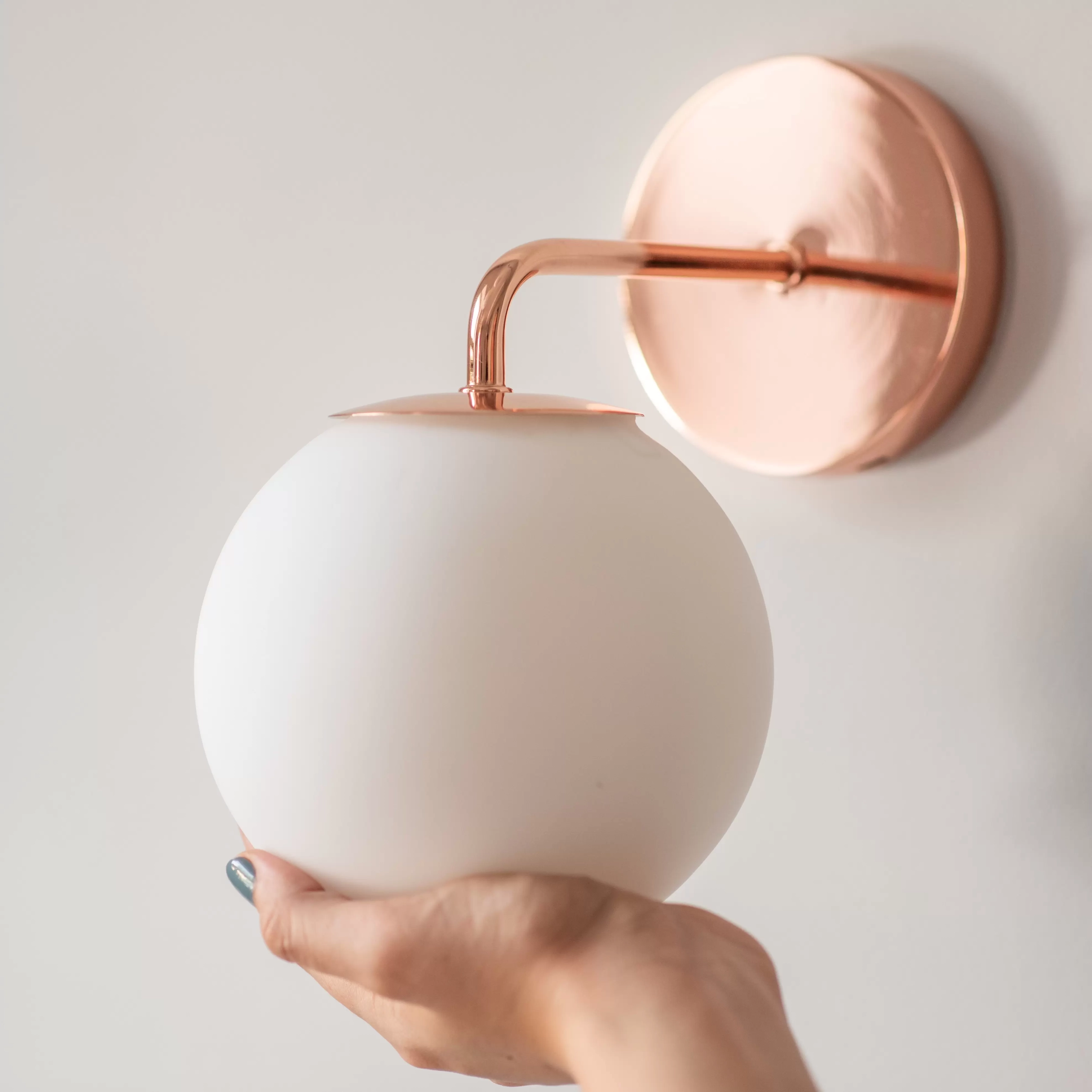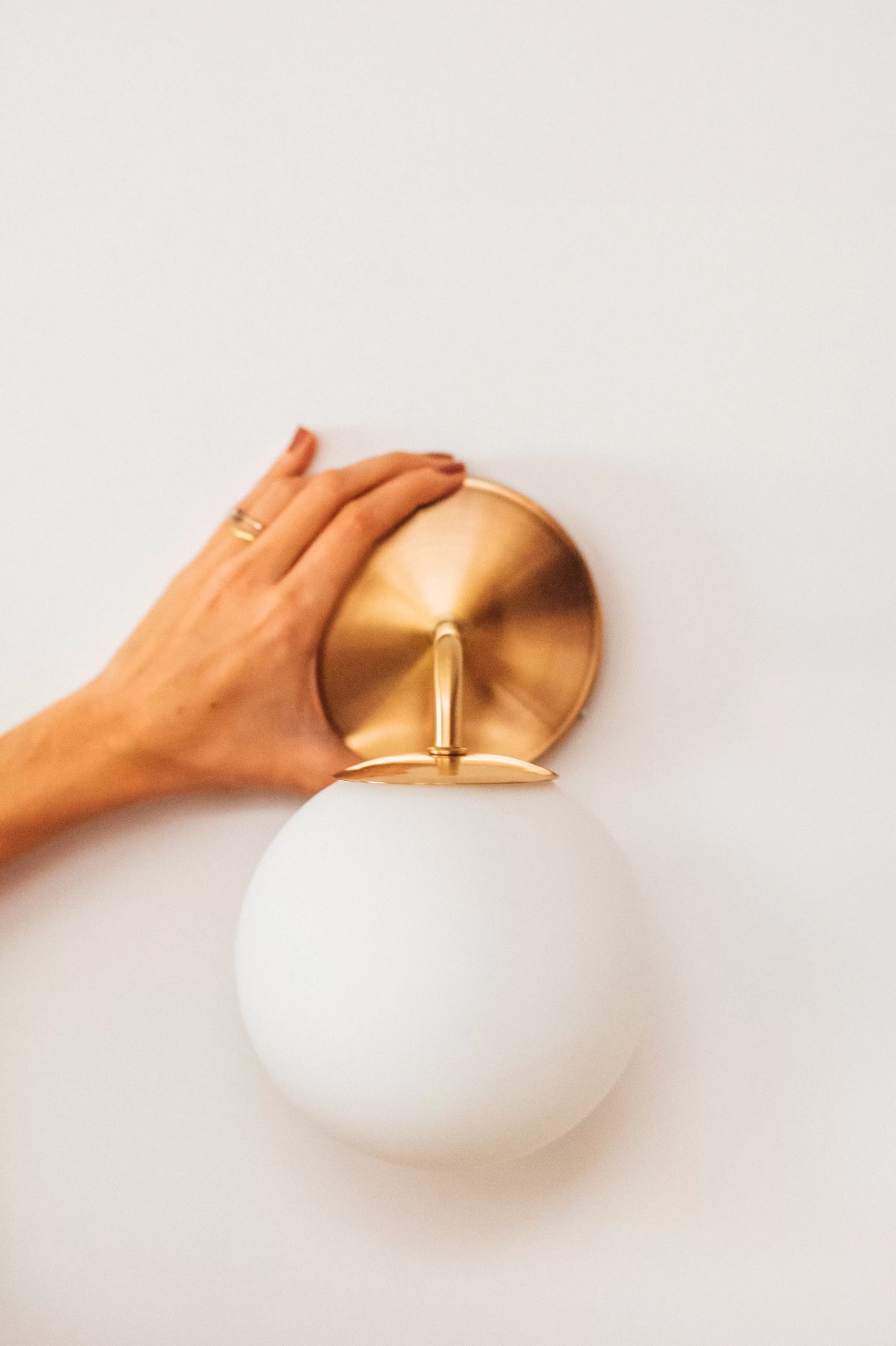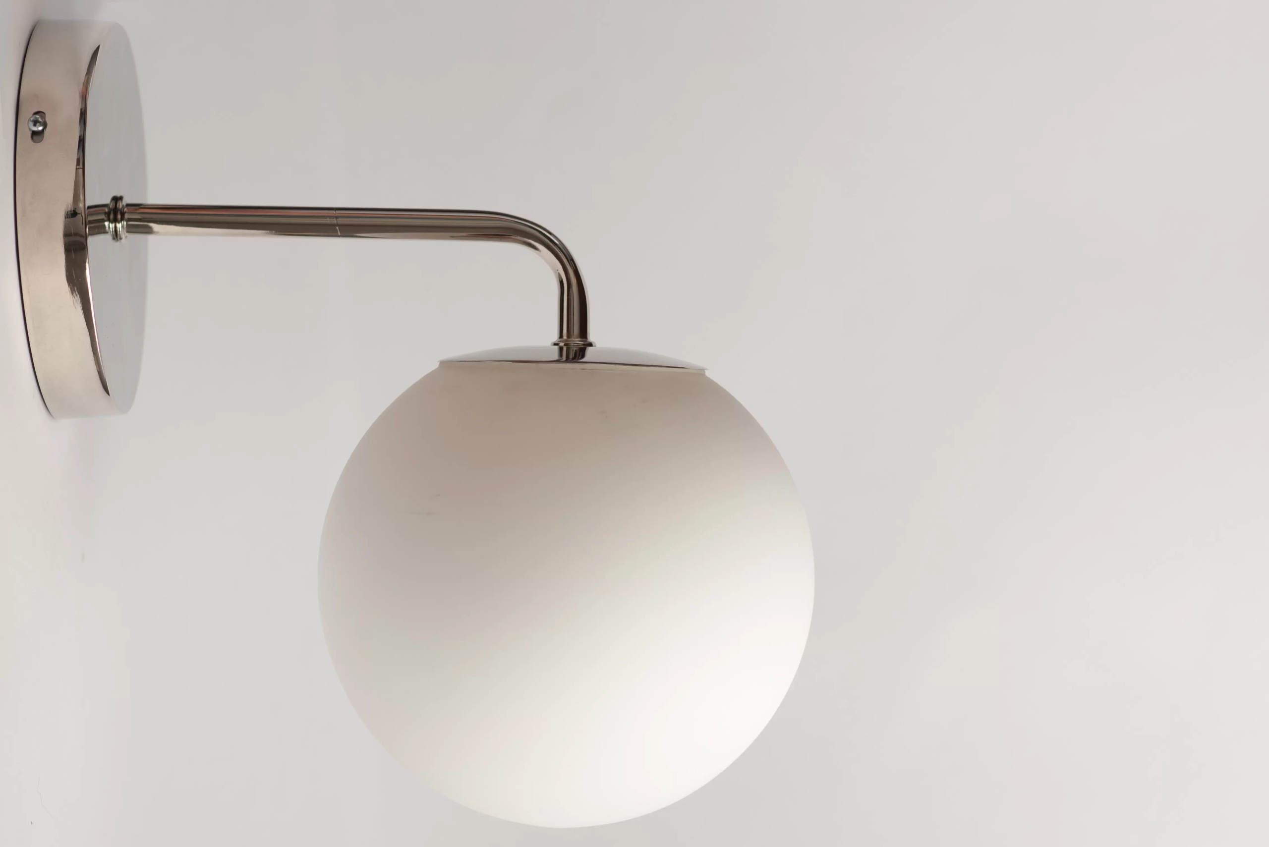 Aplique Bob. Luminaria de aplique fabricada en cuerpo de metal y luz con tulipa de vidrio opal. Disponible en blanco, negro, bronce, cobre y níquel.