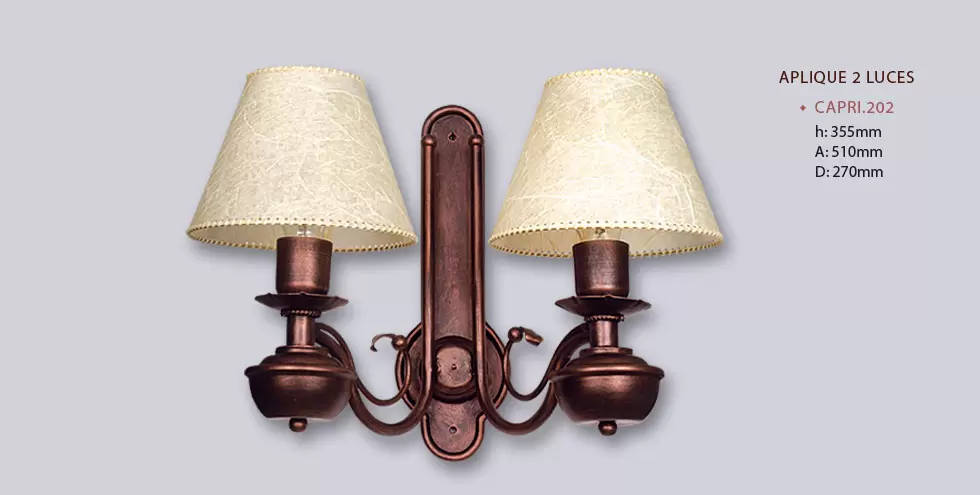 El aplique Capri es una lámpara de una o dos luces apto LED, estilo colonial, disponible en color cobre. Adaptable a todo tipo de ambiente.