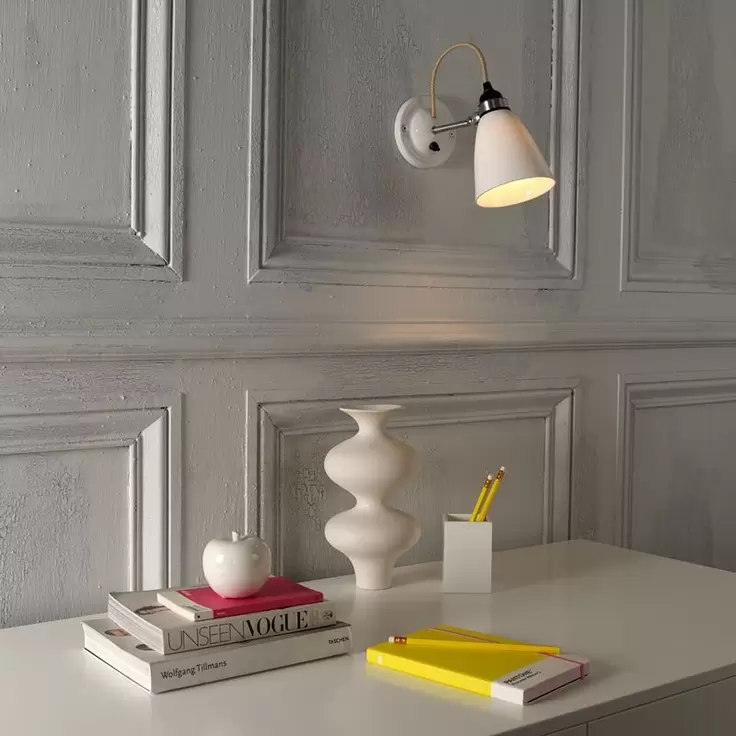 La versión aplique del modelo Carlos, pensado para ambientar e iluminar desde la pared de manera puntual. Ideal para colocar en dormitorios como luz de mesa, baños y pasillos. A diferencia de otros apliques, este modelo cuenta con la novedad de tener un cable textil con un enchufe e interruptor para poder colocar en cualquier pared sin necesidad de tener una boca eléctrica.