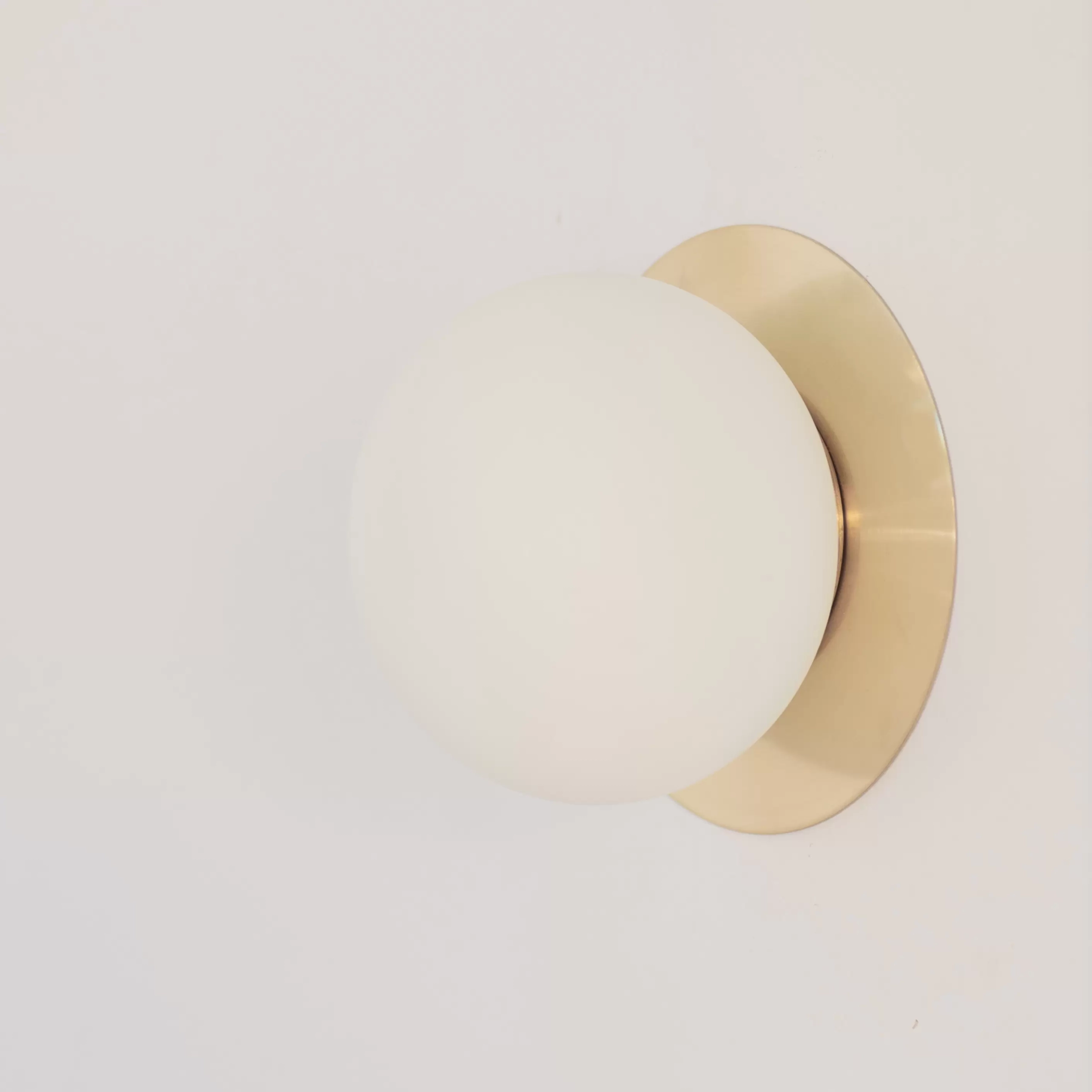 Aplique Cofi. Luminaria de aplique fabricada con base de chapa y luz con tulipa de vidrio opal. Disponible en blanco, negro, bronce, cobre y níquel.