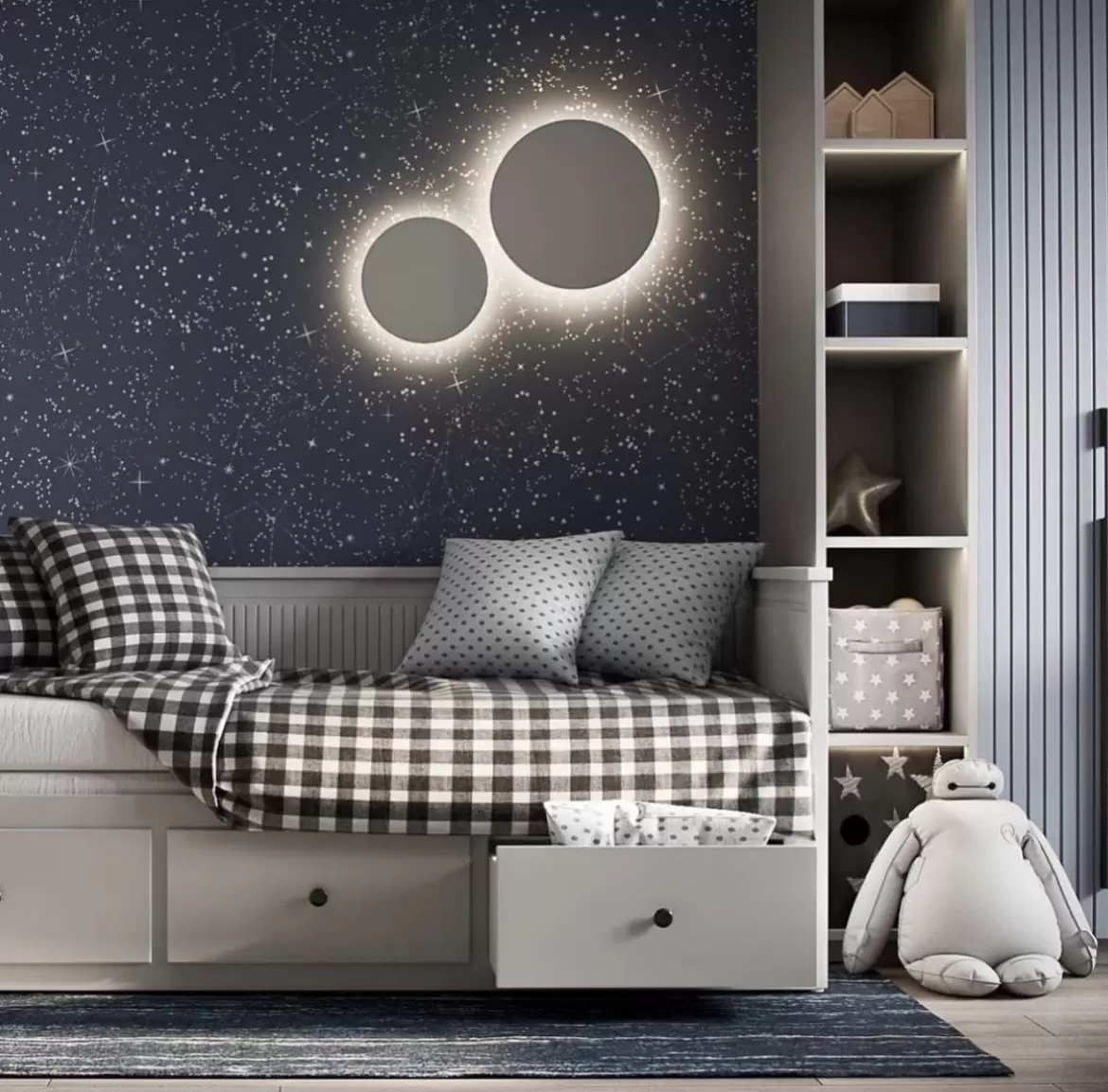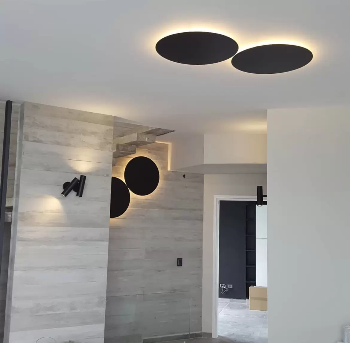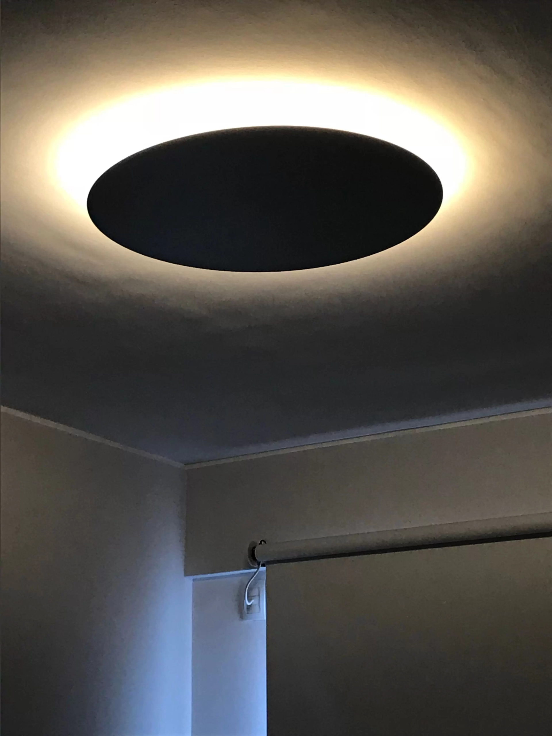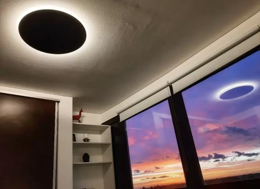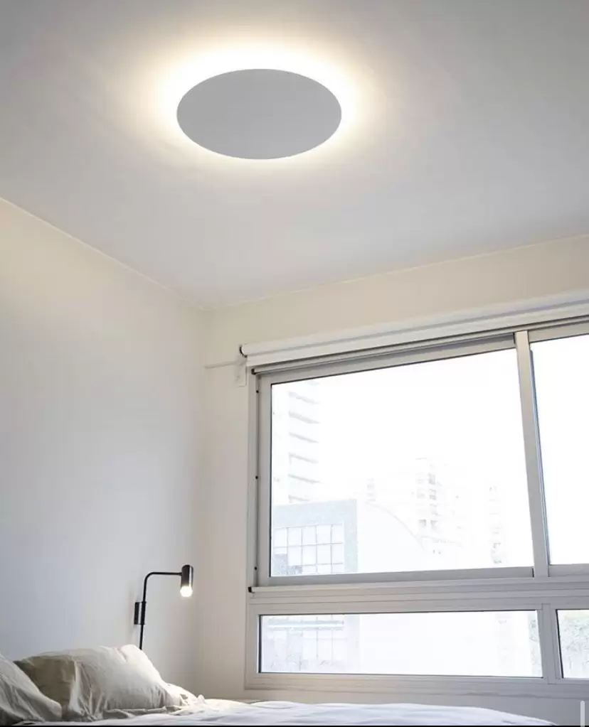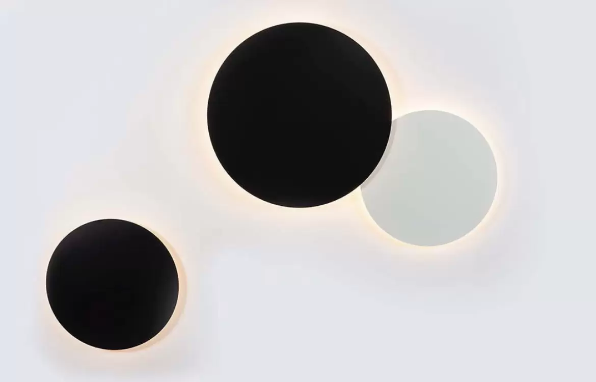 Aplique Eclipse es un plafón de techo o aplique de pared con LED cálido integrado super moderno de luz indirecta disponible en blanco o negro.