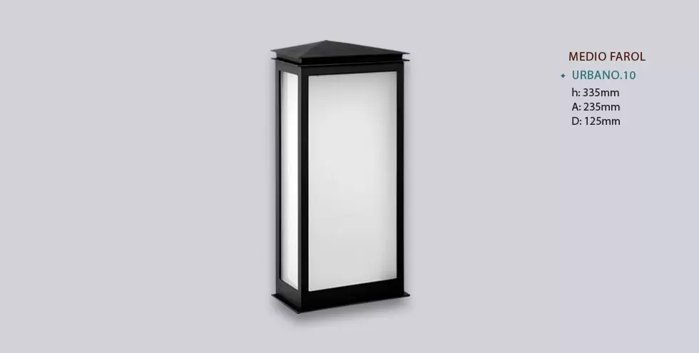 El aplique Farol Urbano es un aplique de una luz, estilo moderno, disponible en color negro y tres tamaños. El mismo es apto para ambiente tanto interior como exterior.