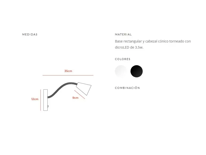 Aplique Felxi es una luminaria de pared con interruptor en la base y con cabezal dirigible ideal para lectura. Te recomendamos utilizar este aplique en el cabezal de tu cama.