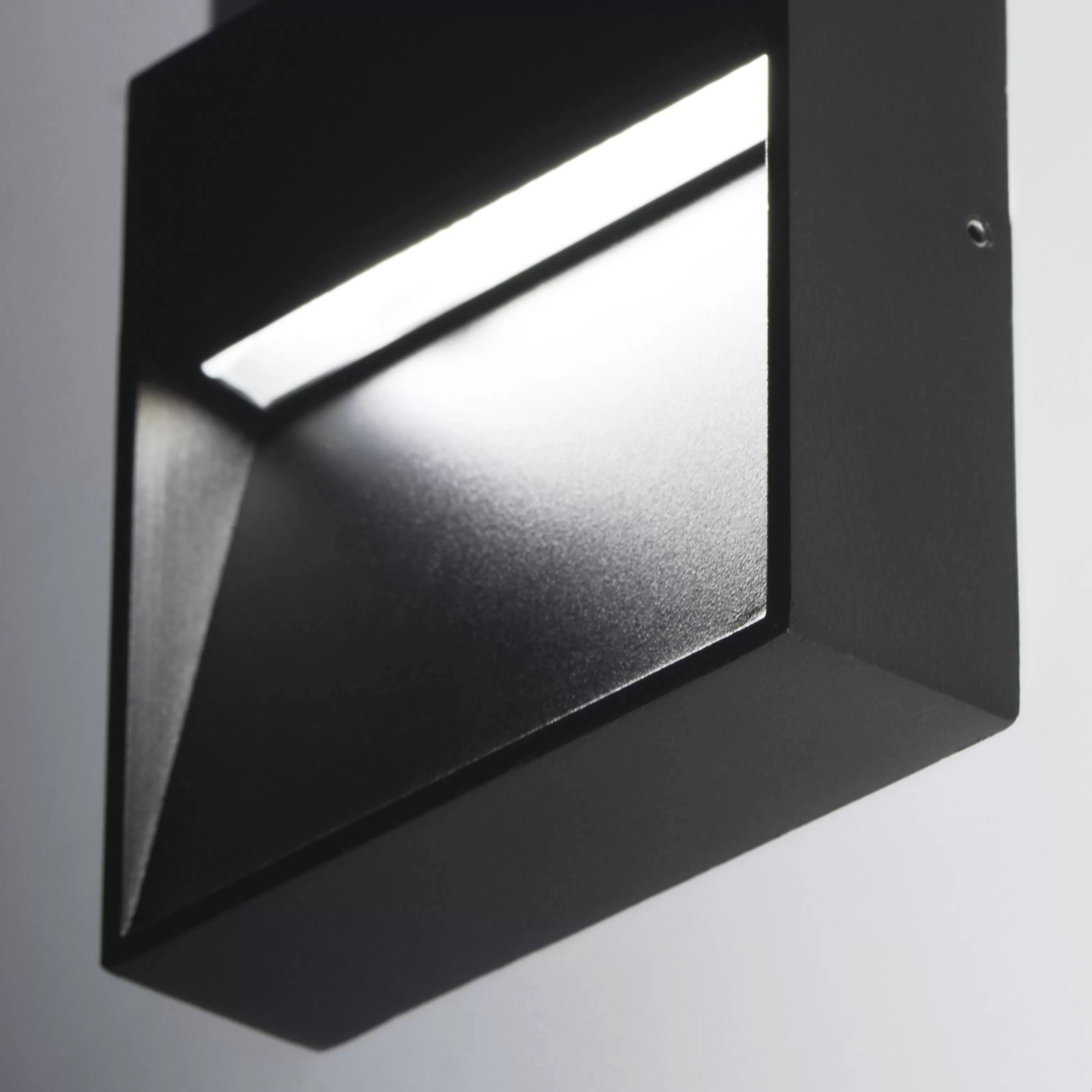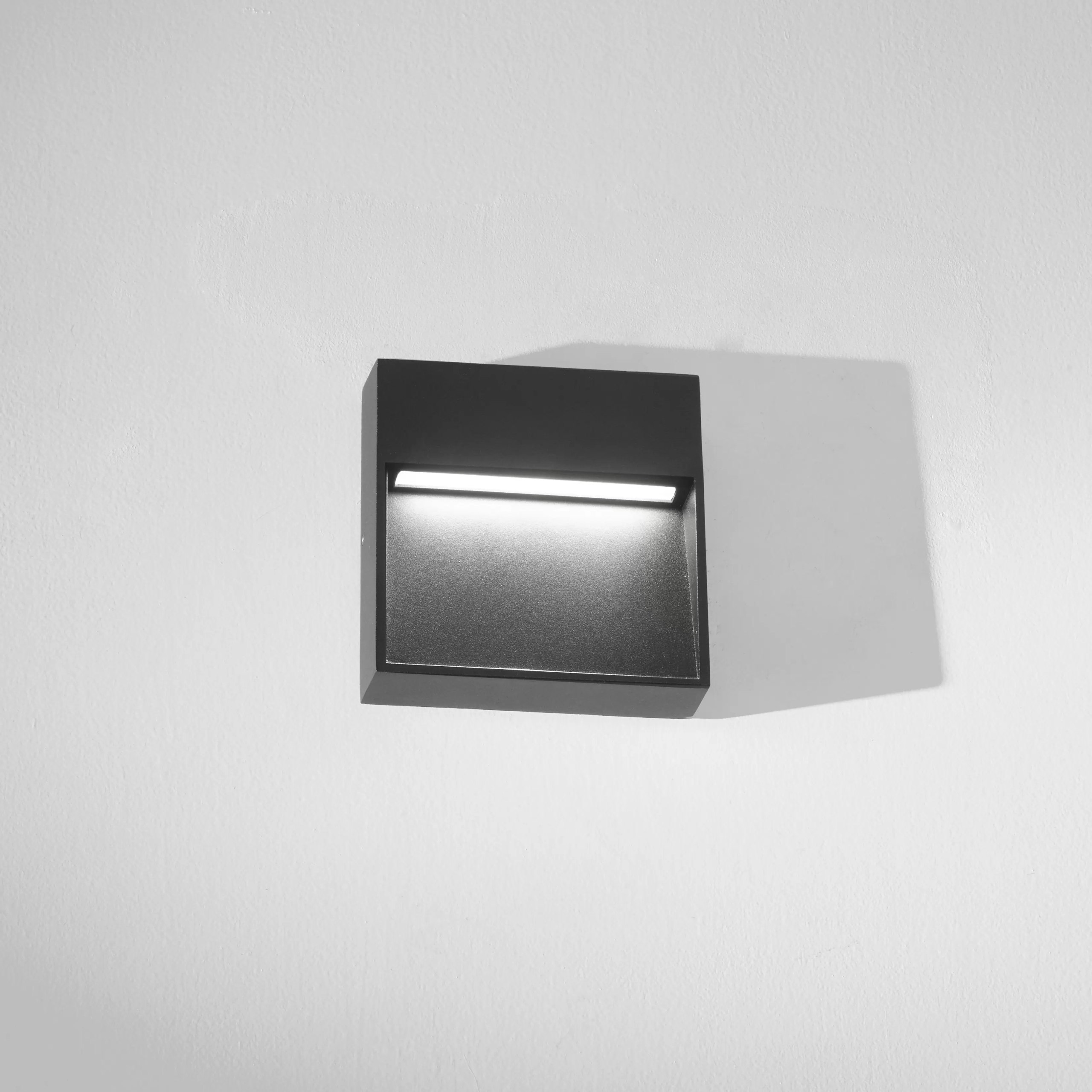 Aplique Okta es una lámpara de pared para el exterior de estilo minimalista, que esta fabricado en su totalidad en aluminio. Con LED integrado.