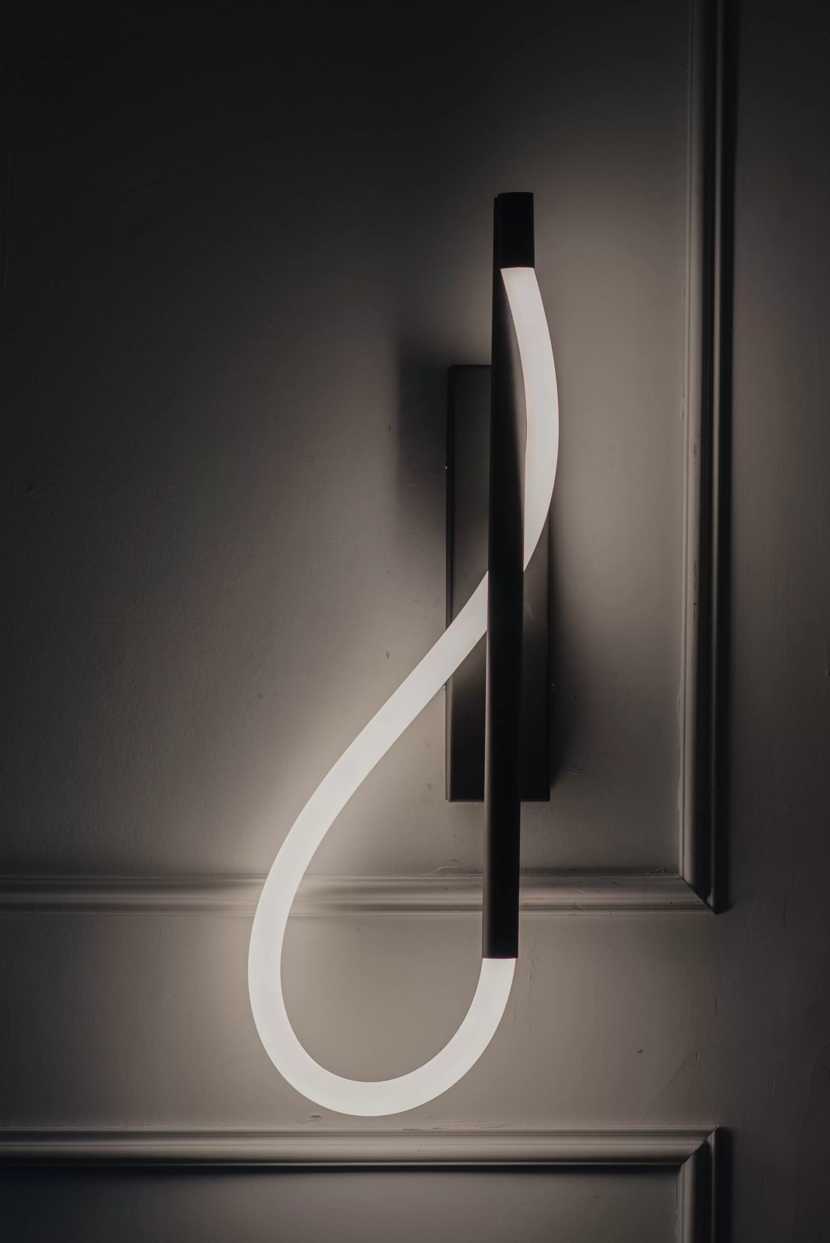 Aplique Organic Recto. Luminaria moderna fabricada en metal, con tira LED integrada y fuente switching dimmerizable. Disponible en blanco, negro o bronce.