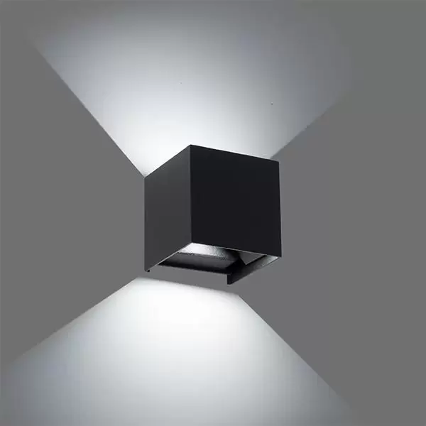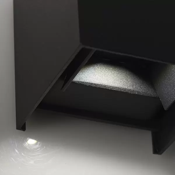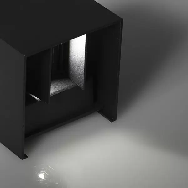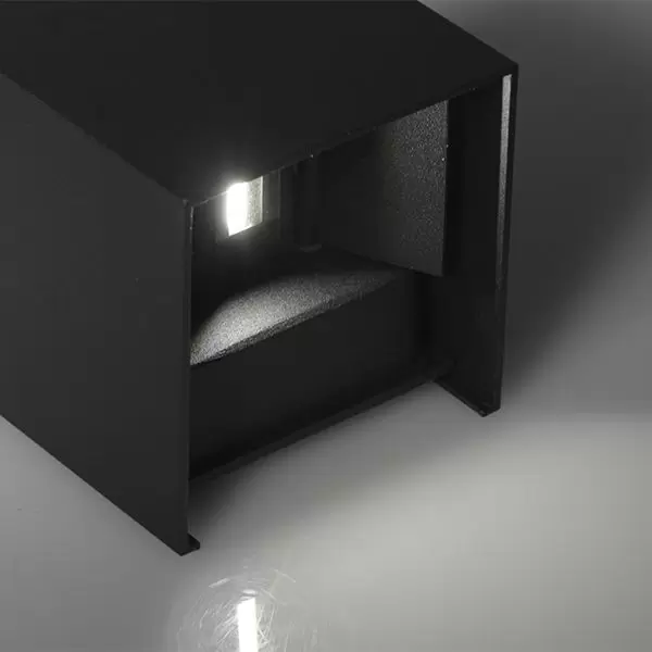 Aplique Plevres. Lámpara de aplique de exterior, fabricada en metal y vidrio, con LED integrado y estilo moderno. Disponible únicamente en color negro.
