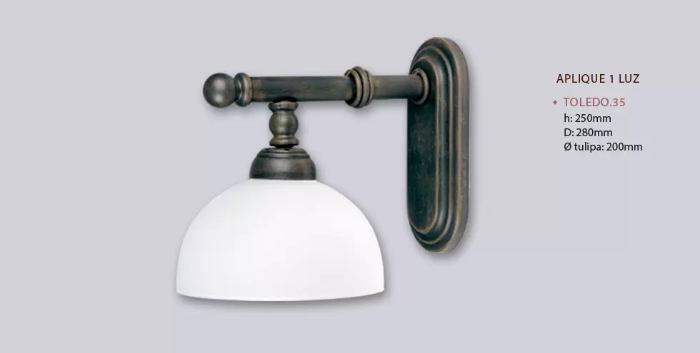 El aplique Toledo es una lámpara de una luz, estilo rústico, disponible en color cuero patinado. Adaptable a todo tipo de ambiente.