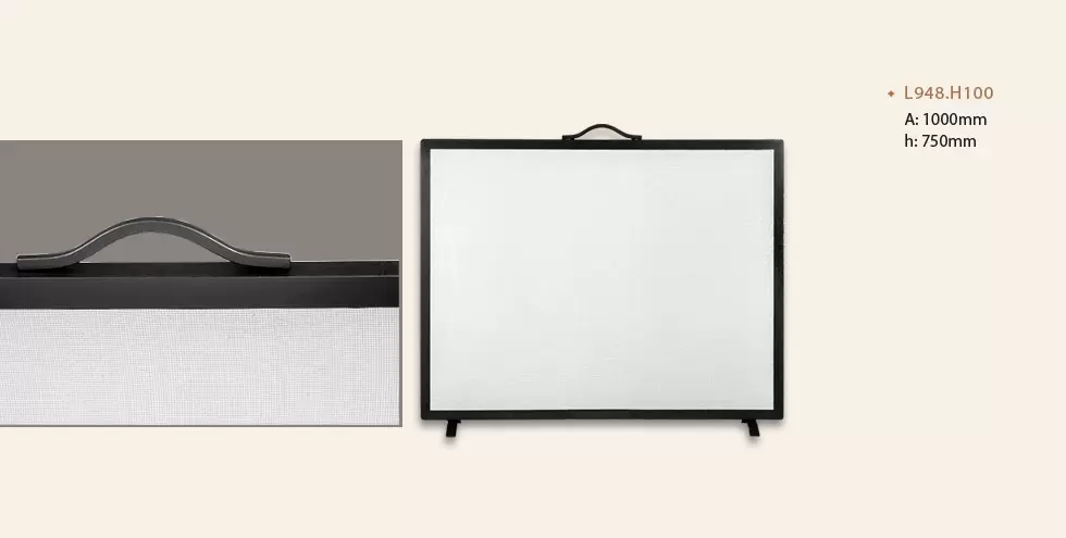 El chispero Minimalista es un accesorio de calefacción fabricado en hierro, con malla de acero, disponible en color negro y cuatro tamaños.