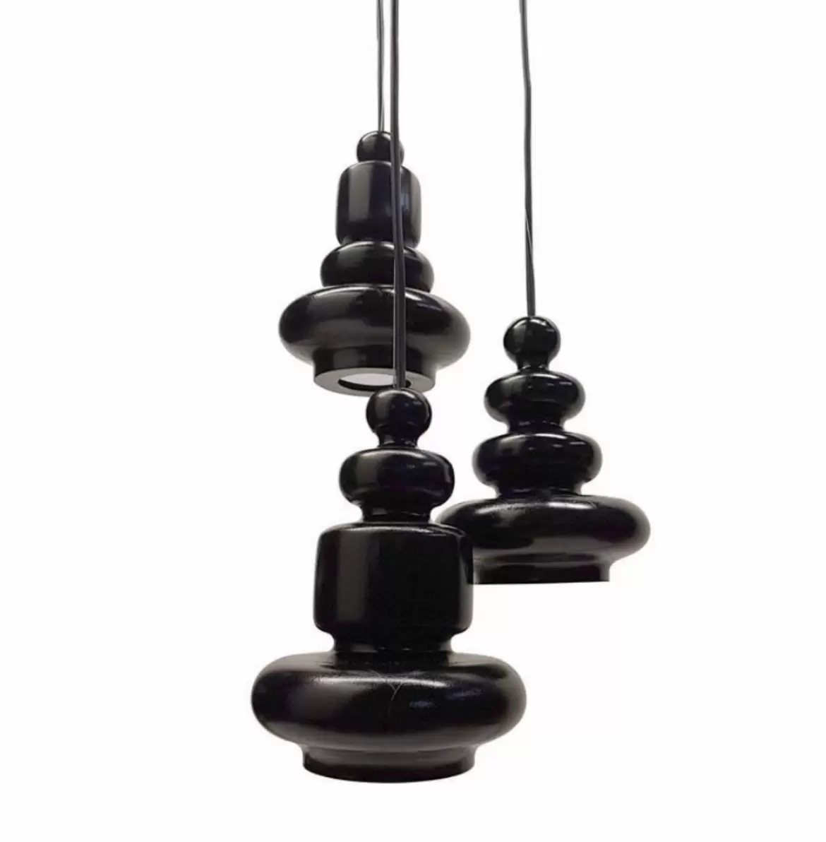Colgante 3 reyes esta diseñada en su totalidad en madera torneada artesanalmente. Disponible en color natural o negro permite adaptarse a distintos tipos de ambientación.