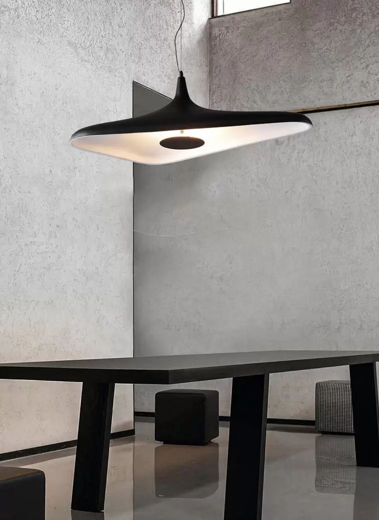 Colgante Akaki es una lámpara de colgar de estilo moderno, fabricada en resina. Incluye LED integrado, y viene en tres tamaños diferentes y en color negro.