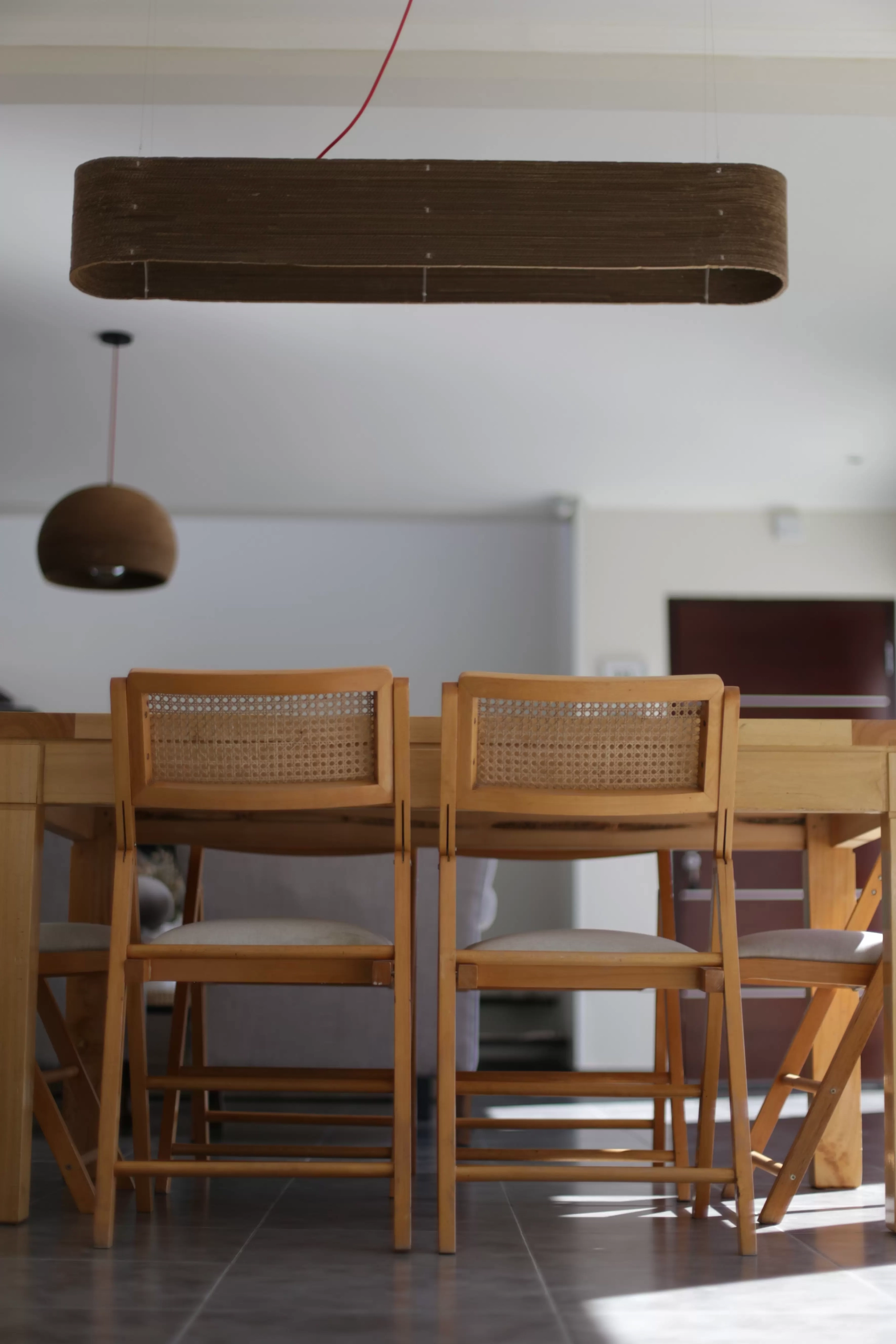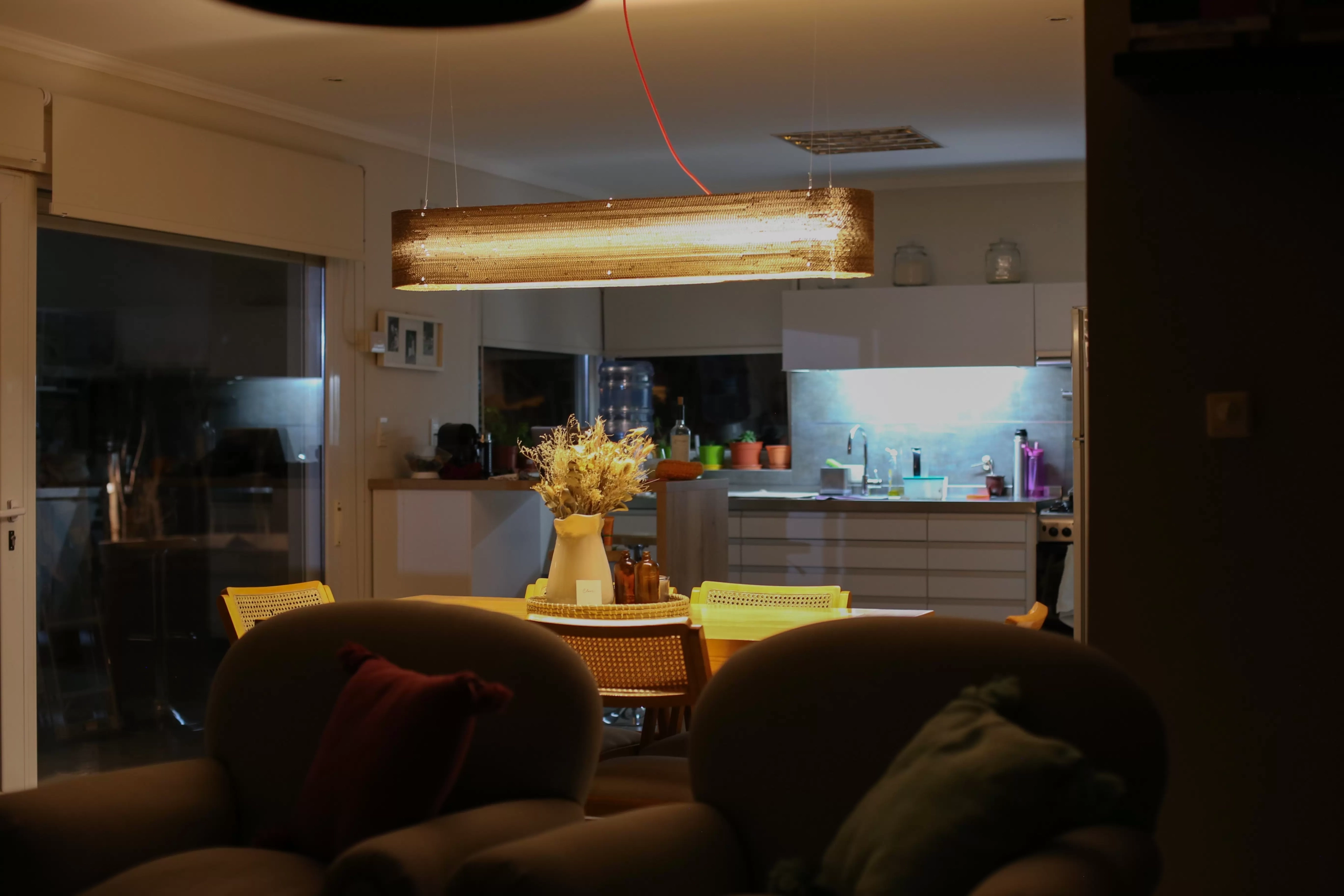 Colgante Apaisana es una lámpara de colgar rectangular para un tubo de luz LED realizada a base cartón reciclado de alta densidad.