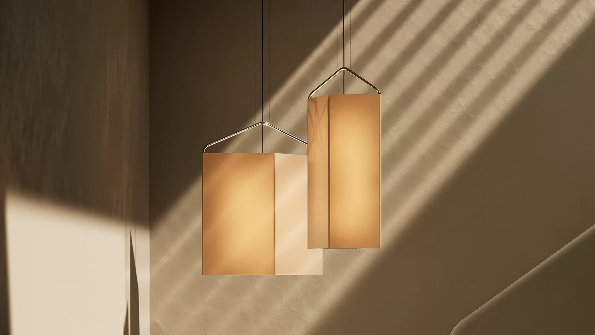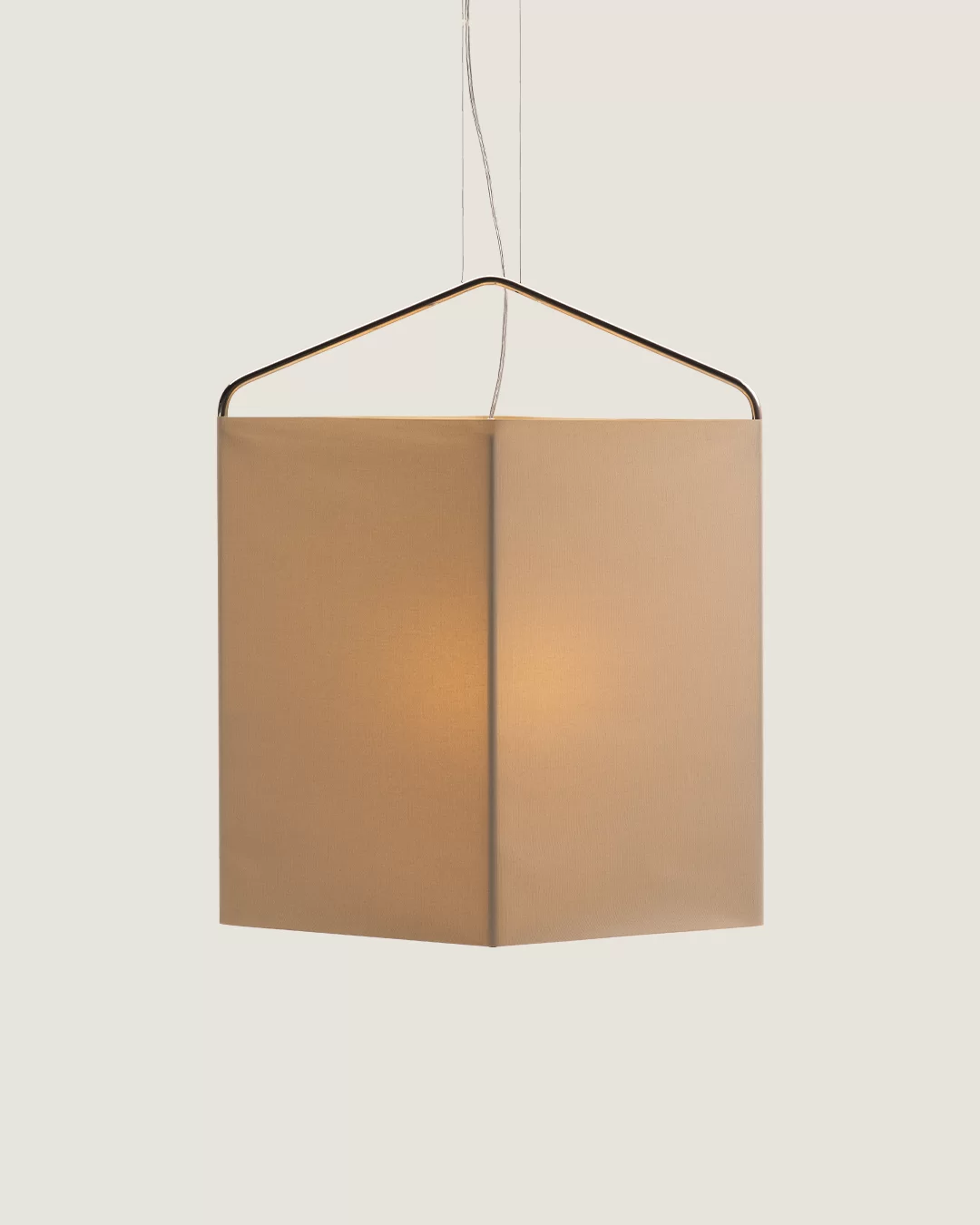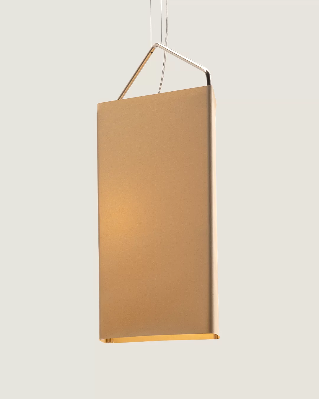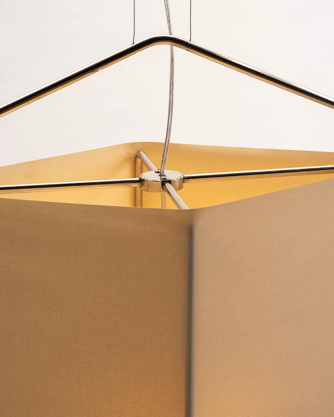 En su interior se encuentra un sistema de iluminación suspendido por tensores niquelada encargada de tensar una pantalla textil.