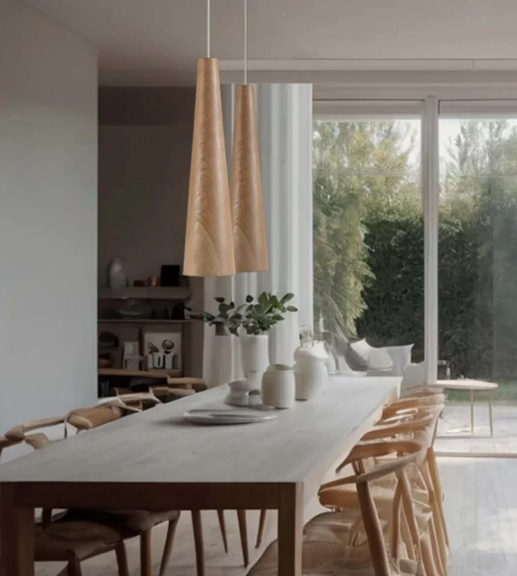 Colgante Berry una lámpara colgante con forma de cónica de madera de lenga maciza torneada. Para un foco apto LED de uso interior.