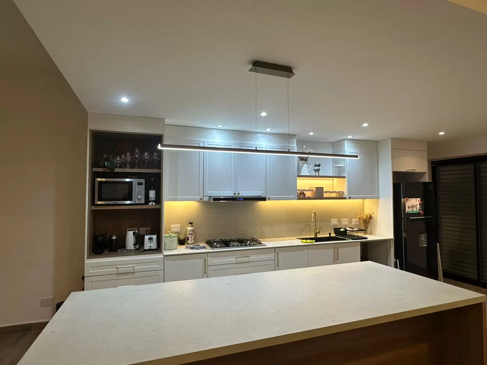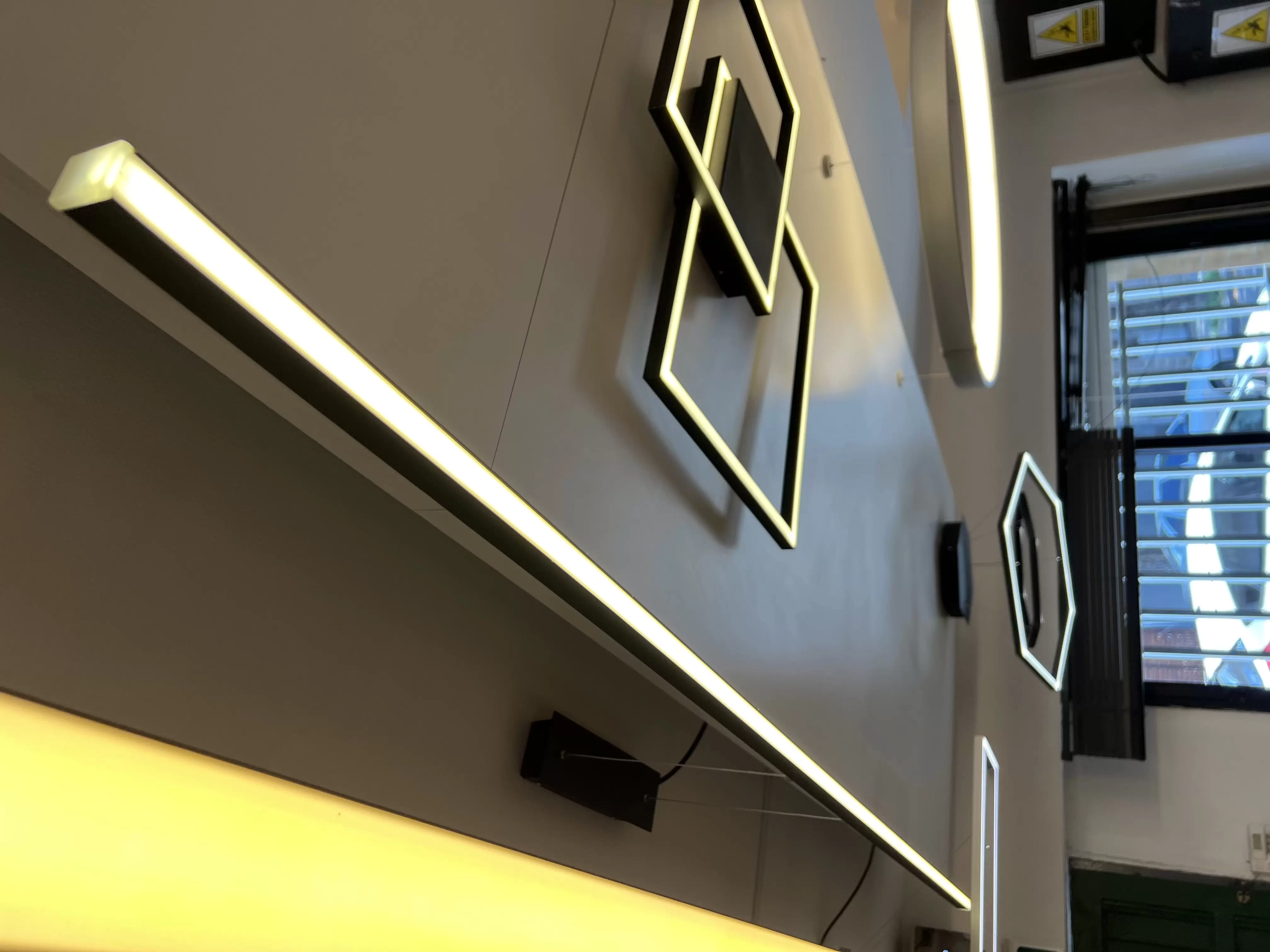 Colgante Buro es una lámapara lineal ultra delgada de aluminio. Lámpara super personalizable respecto a color de led, largo de tensores, dimerización y color del artefacto.