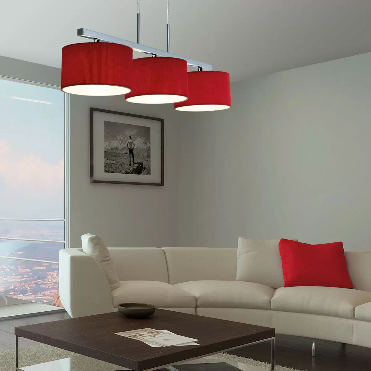 Colgante Calpe triple construido en organza blanca, roja o negra con acabado en cromo.