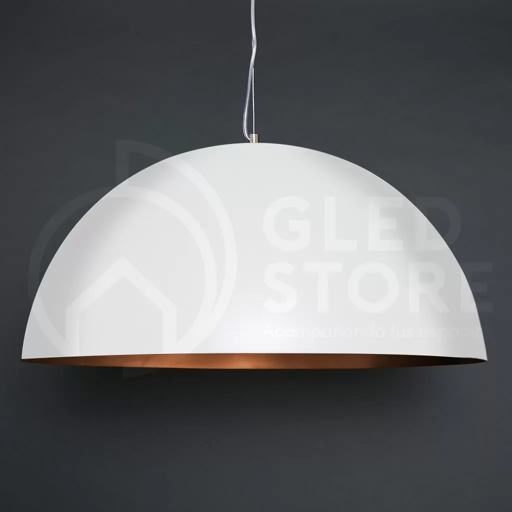 Colgante Campana. Lámpara de colgar estilo campana para un foco apto LED de 60cm de diámetro. Disponible en color negro y blanco con interior en cobre, bronce o blanco.
