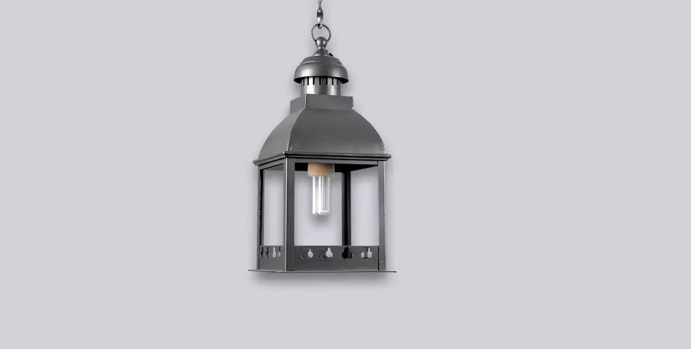 El colgante Colonial es una lámpara de una luz, estilo colonial, disponible en color gris. El mismo es apto para ambiente tanto interior como exterior. Disponible en dos tamaños: chico y grande.