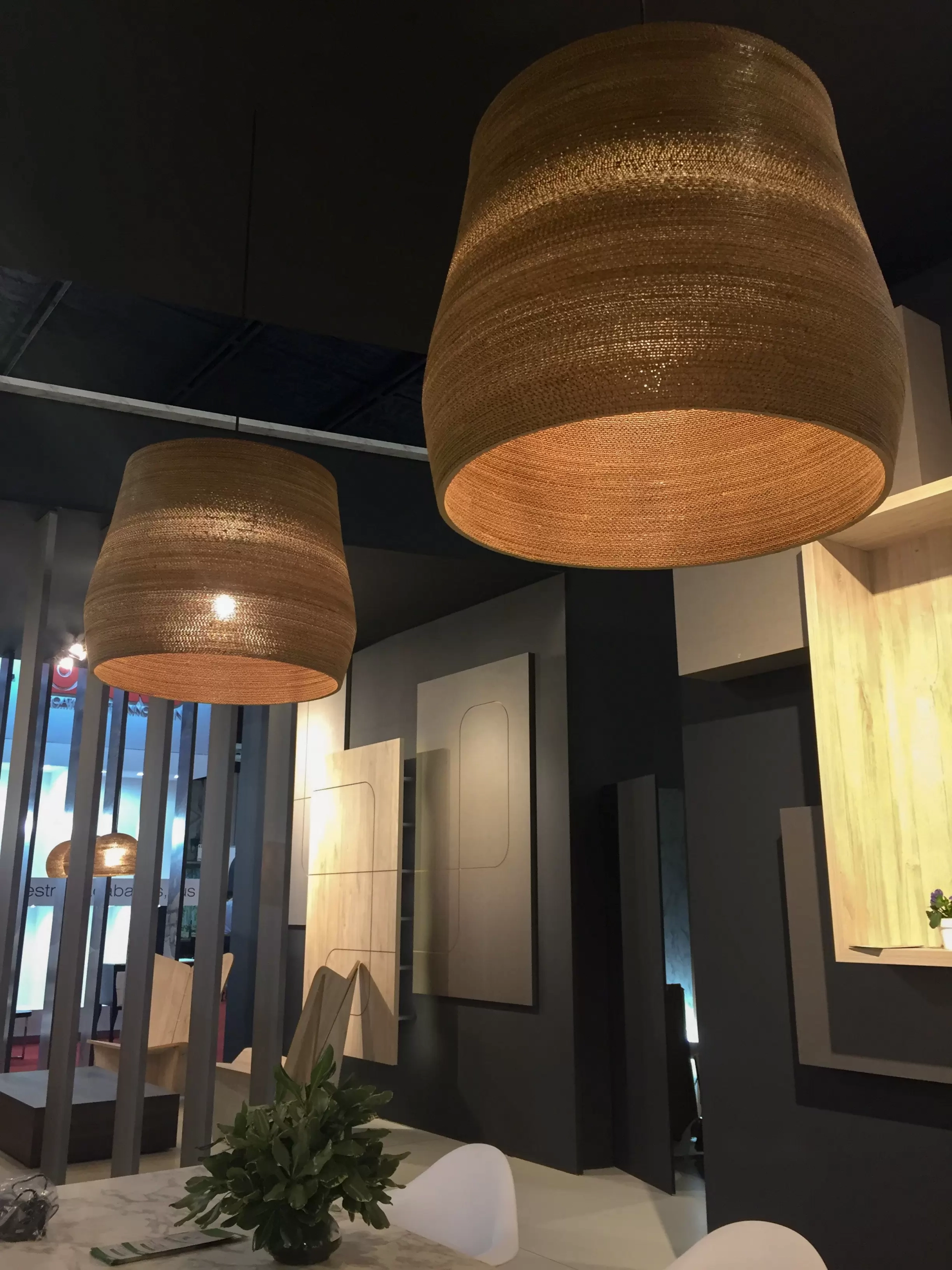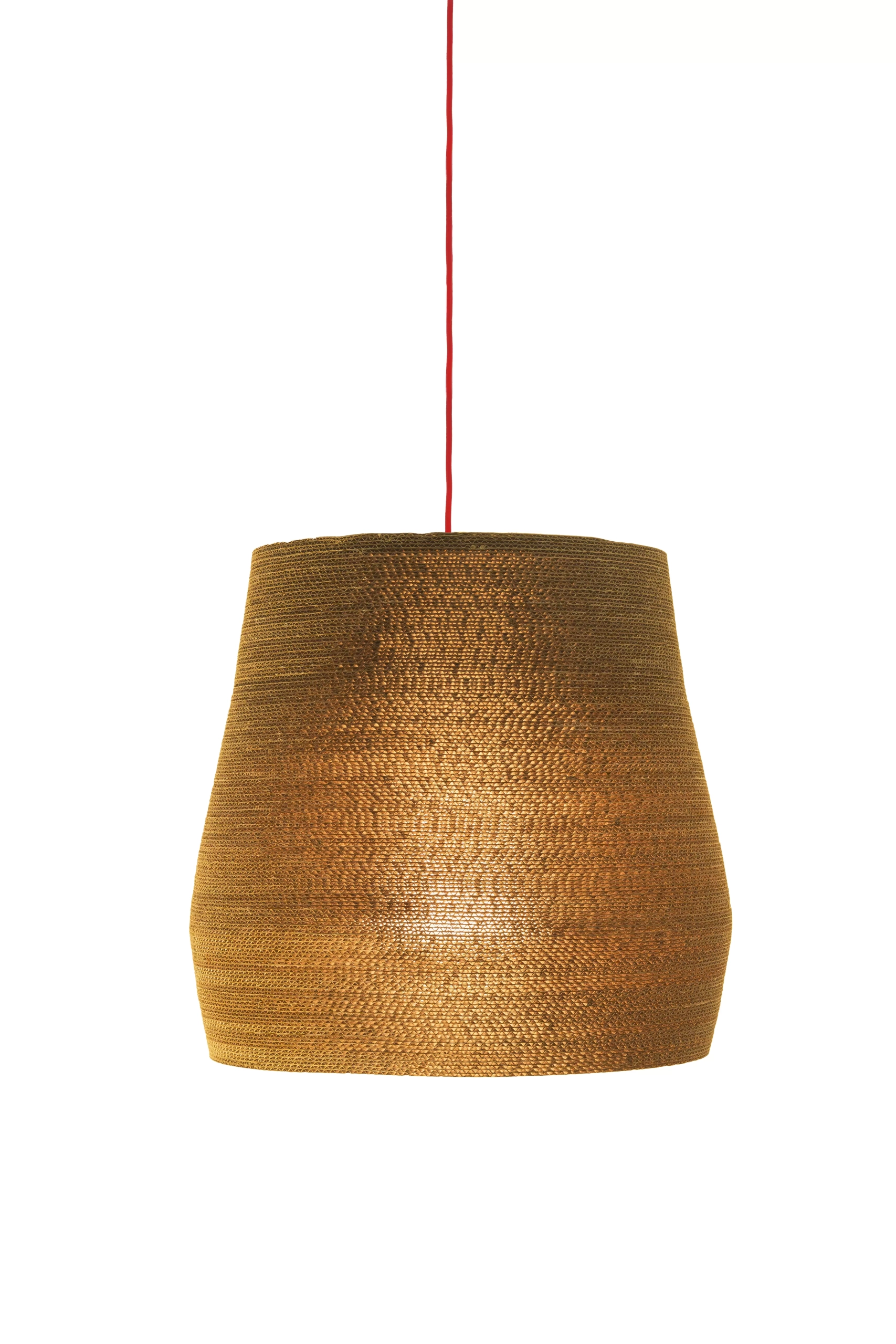Colgante Cono espejado es una lámpara de colgar cónica para una lámpara LED fabricada artesanalmente en cartón de alta densidad reciclado de alta densidad.