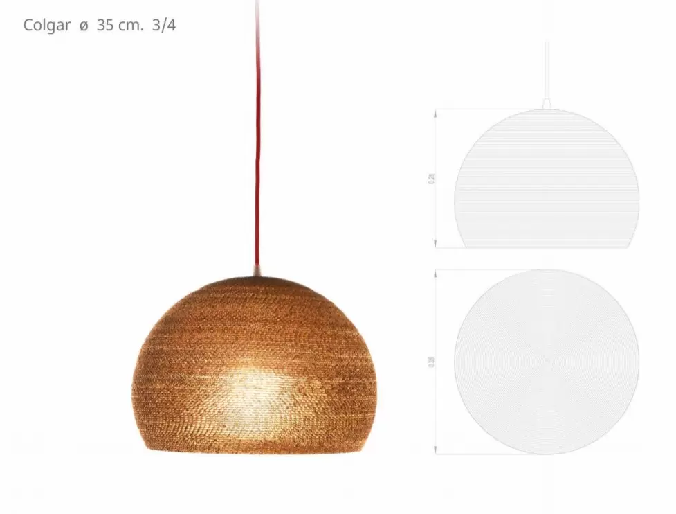 Colgante Esférica es una luminaria para un foco LED fabricada artesanalmente en cartón de alta densidad reciclado. Ideal para colocar en distintos espacios gracias a su variedad de tamaños como sobre una mesada o, bien, sobre una mesa de luz.