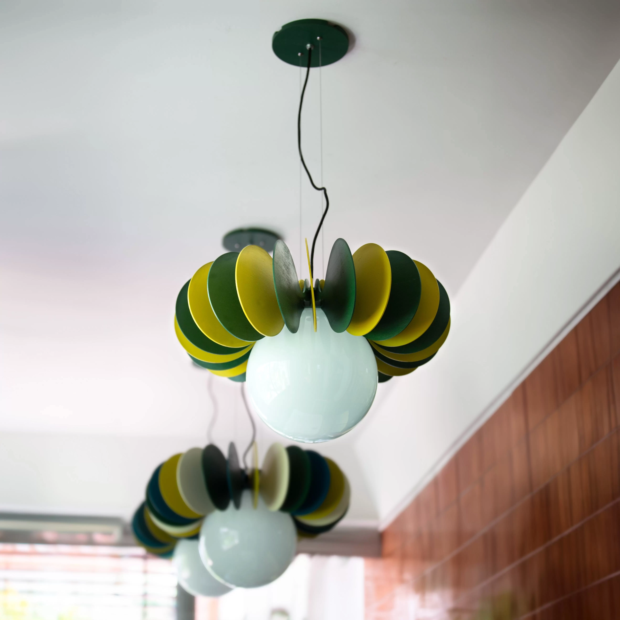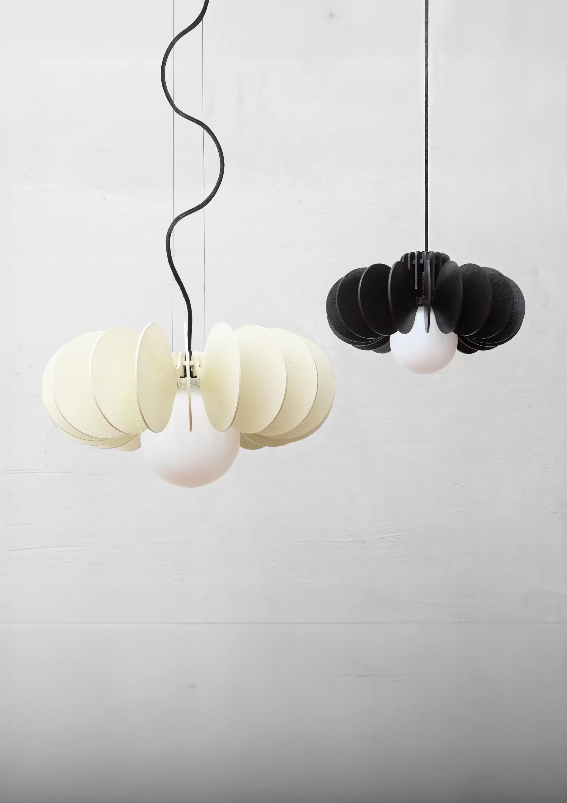 Colgante Flora es una luminaria constituida en madera laminada de estilo moderno, compuesta por 18 o 24 pétalos dependiendo su tamaño. Tiene 3 tamaños.