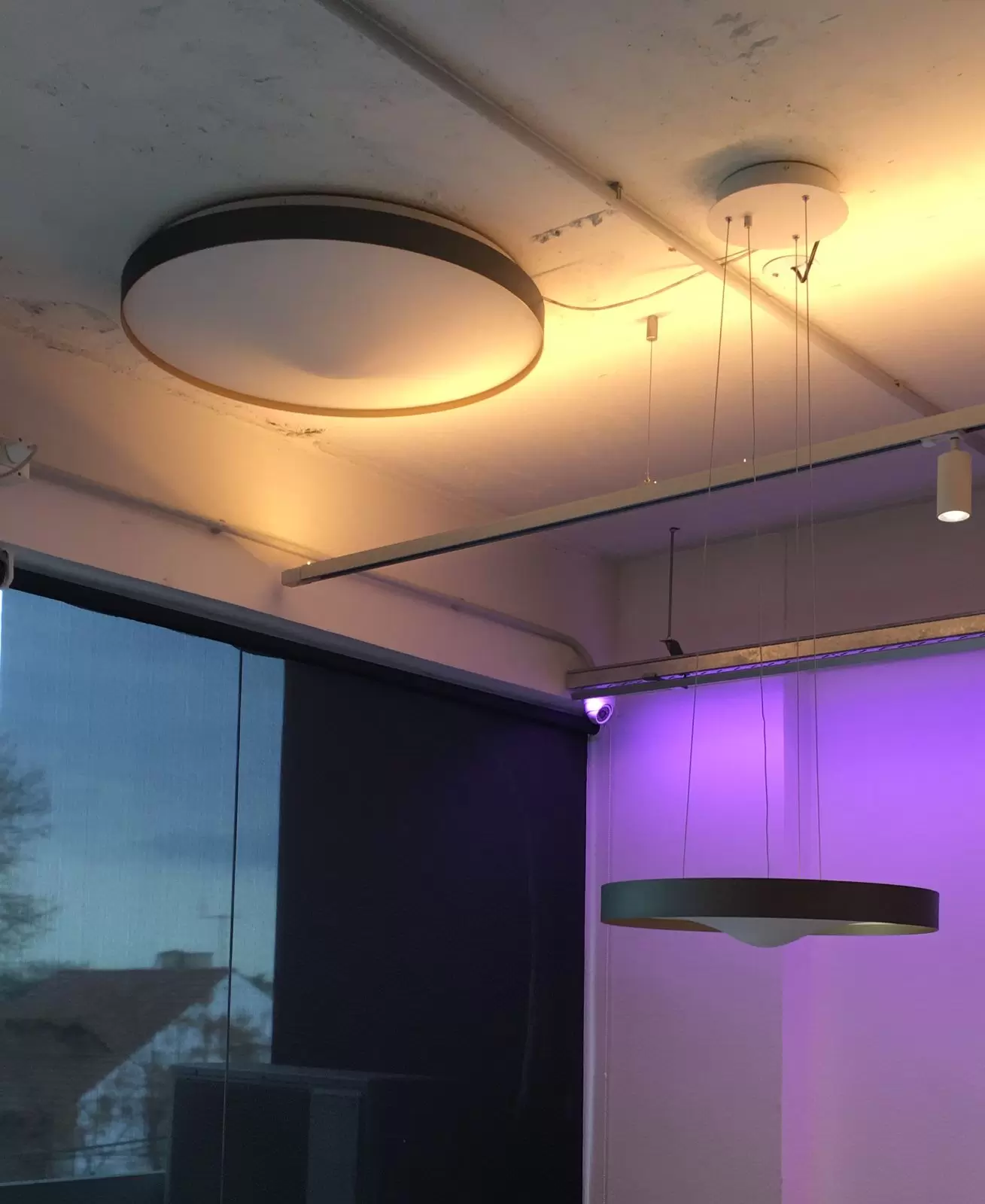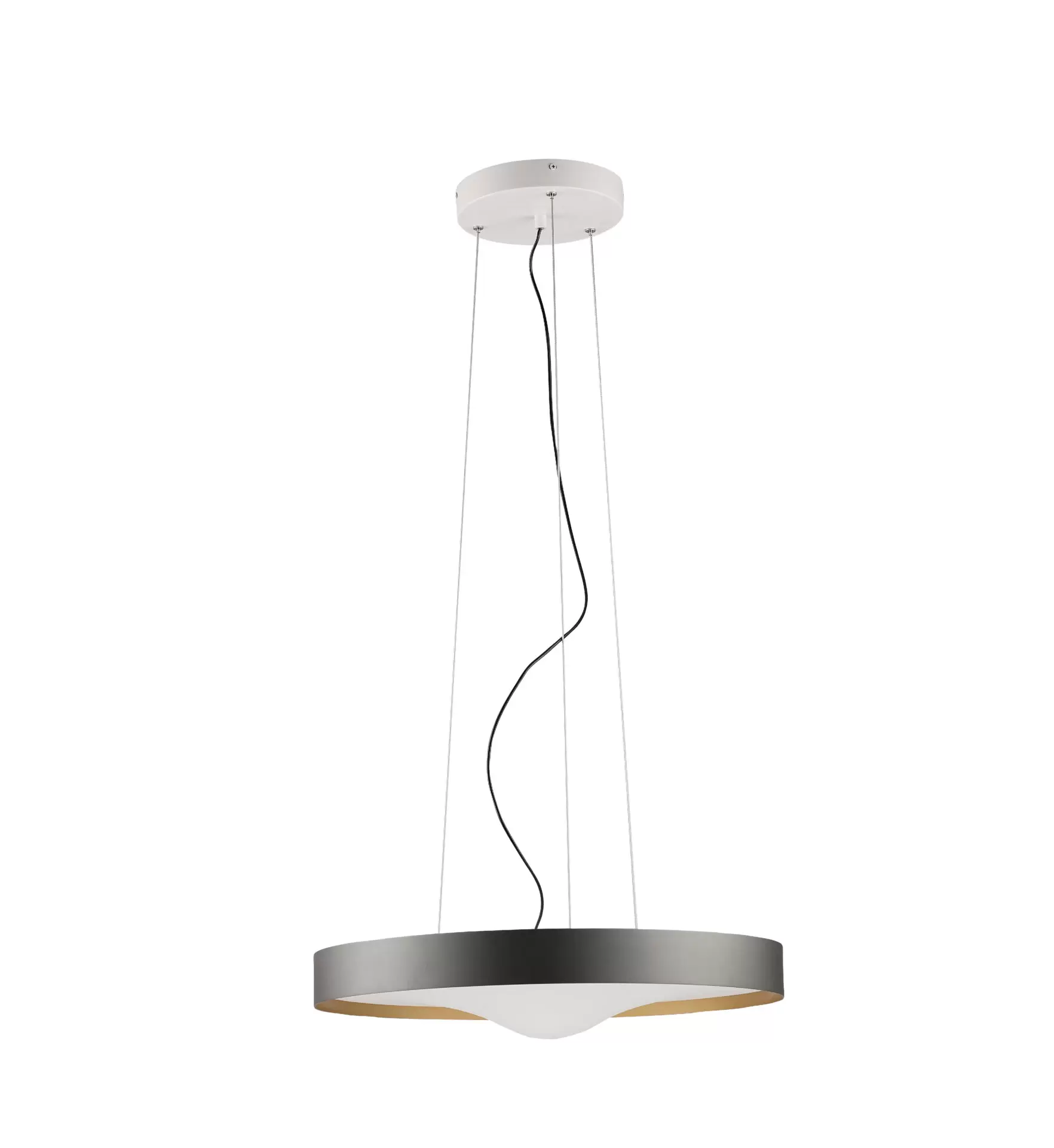 Colgante Fuksal de aspecto circular. Estructura construida en aluminio y difusor opal en forma de gota. Alto control de deslumbramiento. Proyección de luz directa-simétrica.
