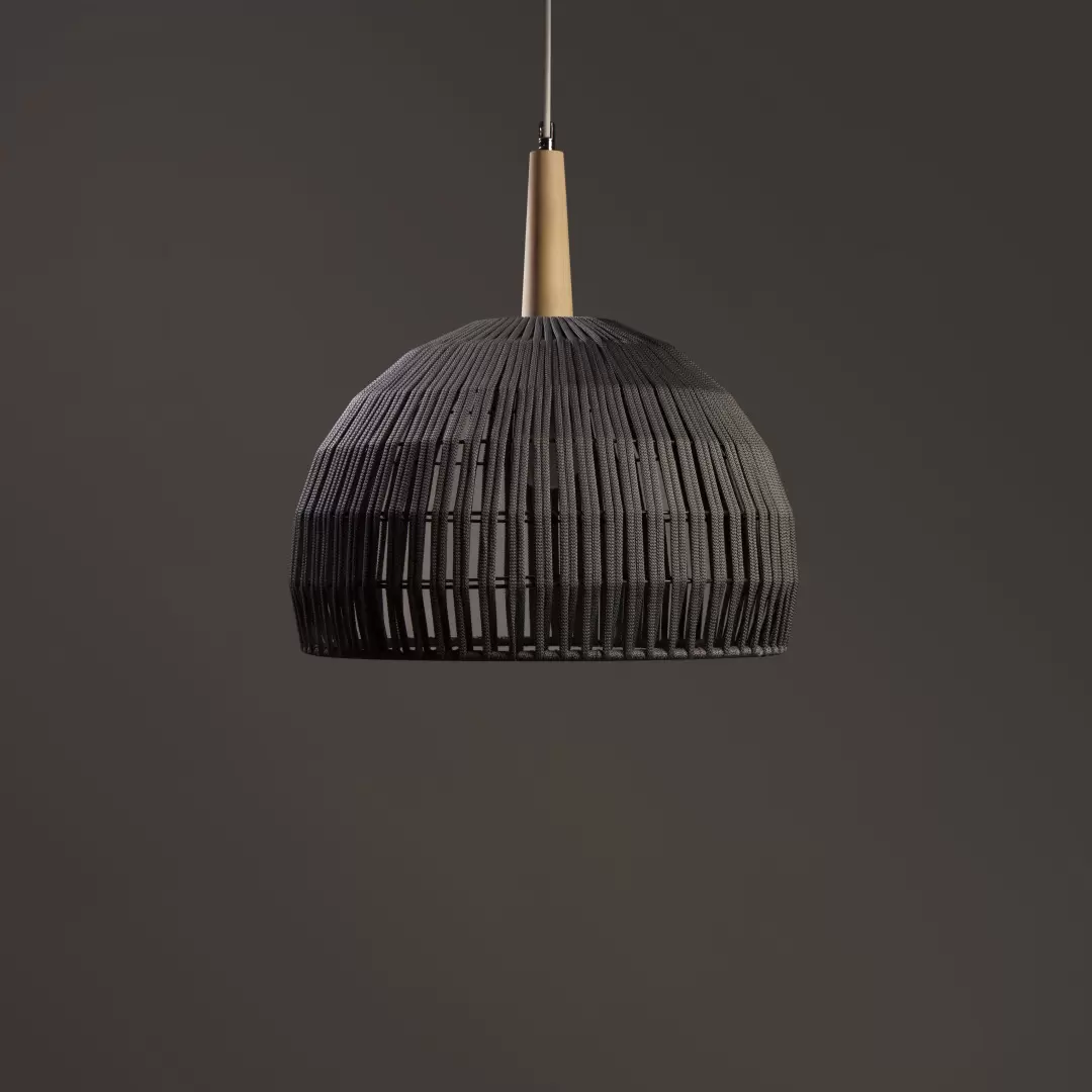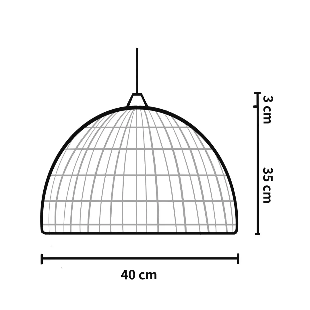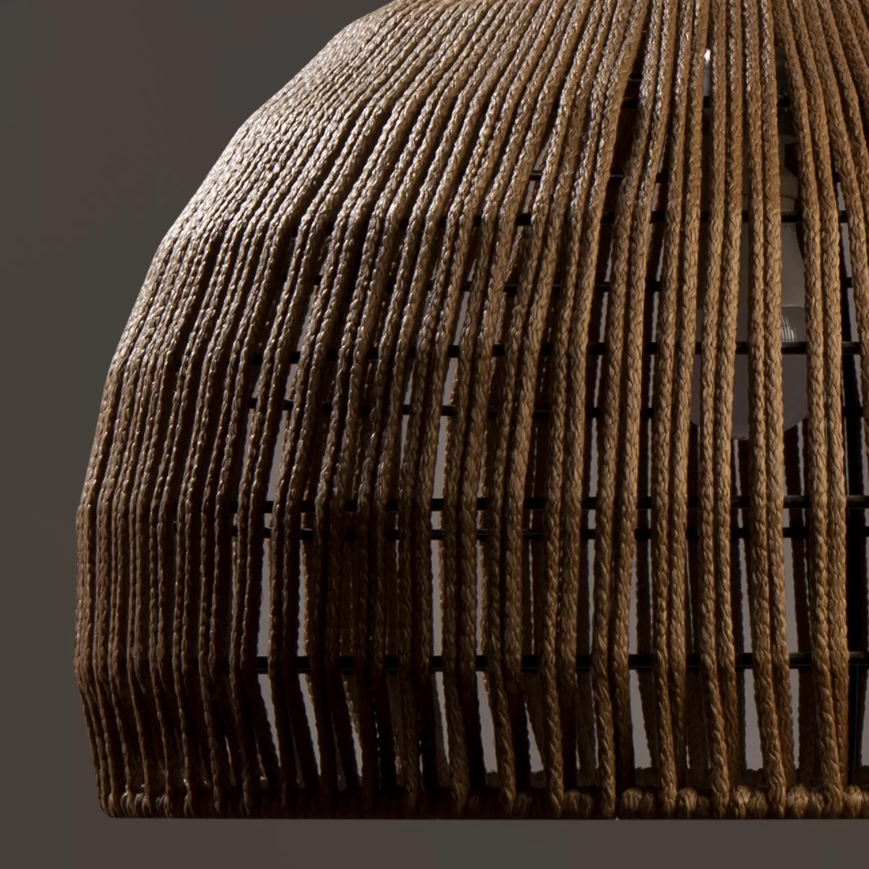 Colgante Hemisfere. Lámpara colgante confeccionada en estructura de metal tejida en yute o hilo. Disponible en color yute y en dos tamaños