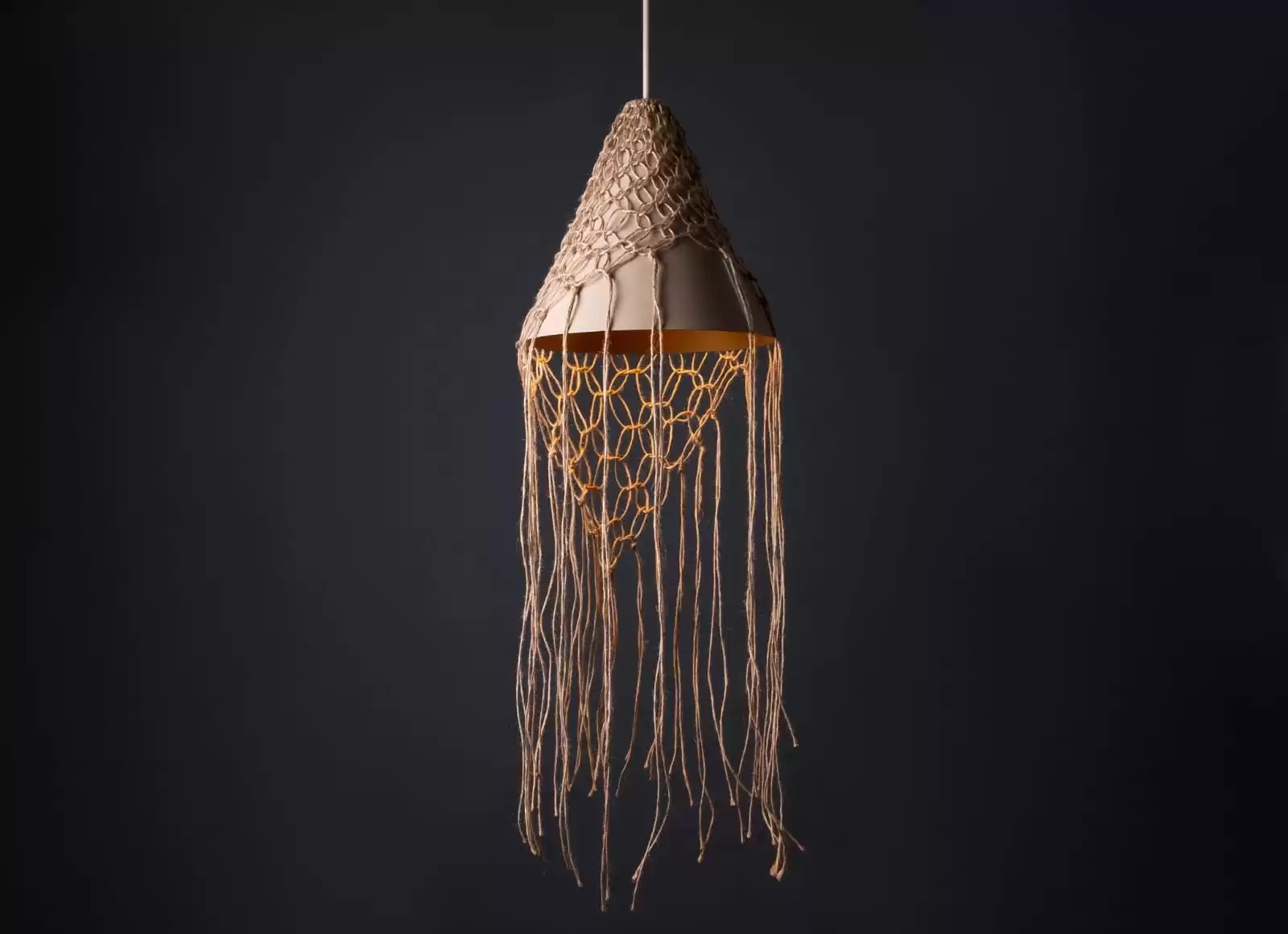 El colgante Iconique Dress es una lámpara estilo campana cónica de 32cm de diámetro disponible tanto en negro como nude con una malla colgante.