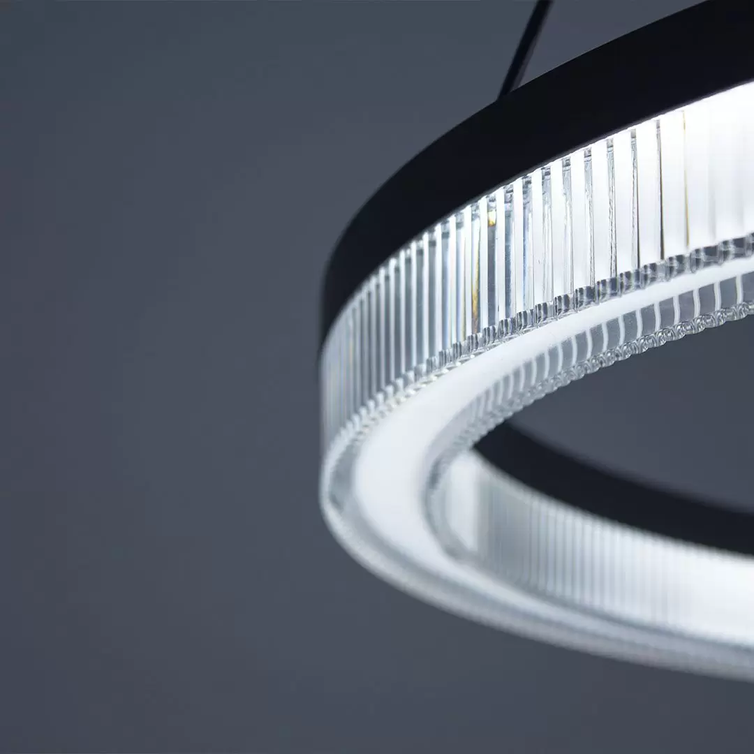 Colgante Luxe. Luminaria colgante de techo, de estilo moderno y elegante, fabricado en materiales de alta calidad. Viene en tres variaciones de potencia y tamaños.