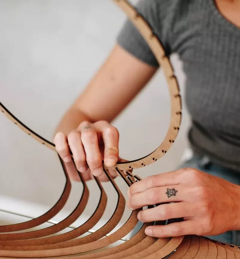 Colgante Maga es una lámpara realizada en finas hebras de madera de forma artesanal disponible en tres colores: blanco, gris y negro. Ideal para iluminar ambientes o espacios de estilo nórdico.