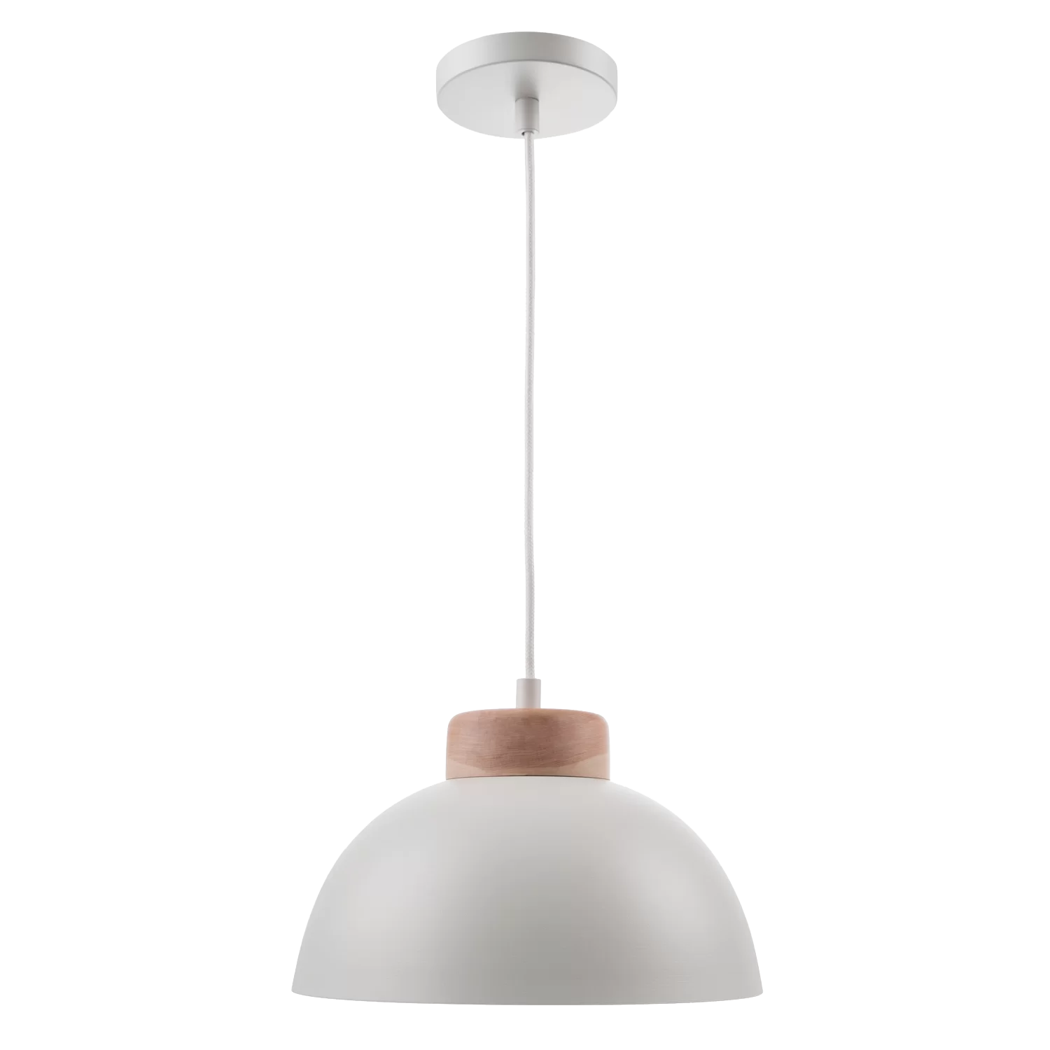 Colgante Maine. Acero, terminación con pintura en polvo termoconvertible poliéster, combinado con madera de lenga natural. Portalámpara E27. Cable textil de 1,5 metros.