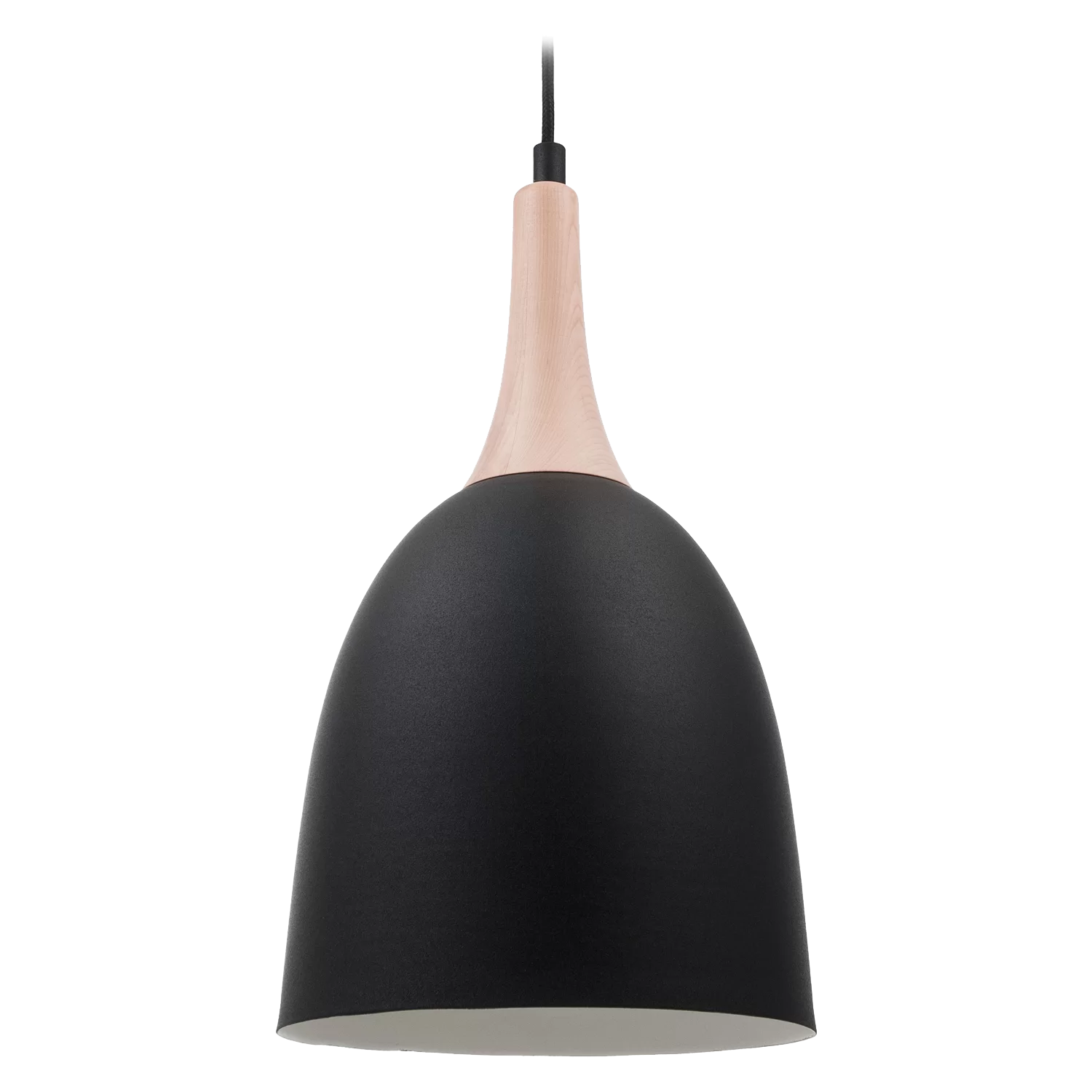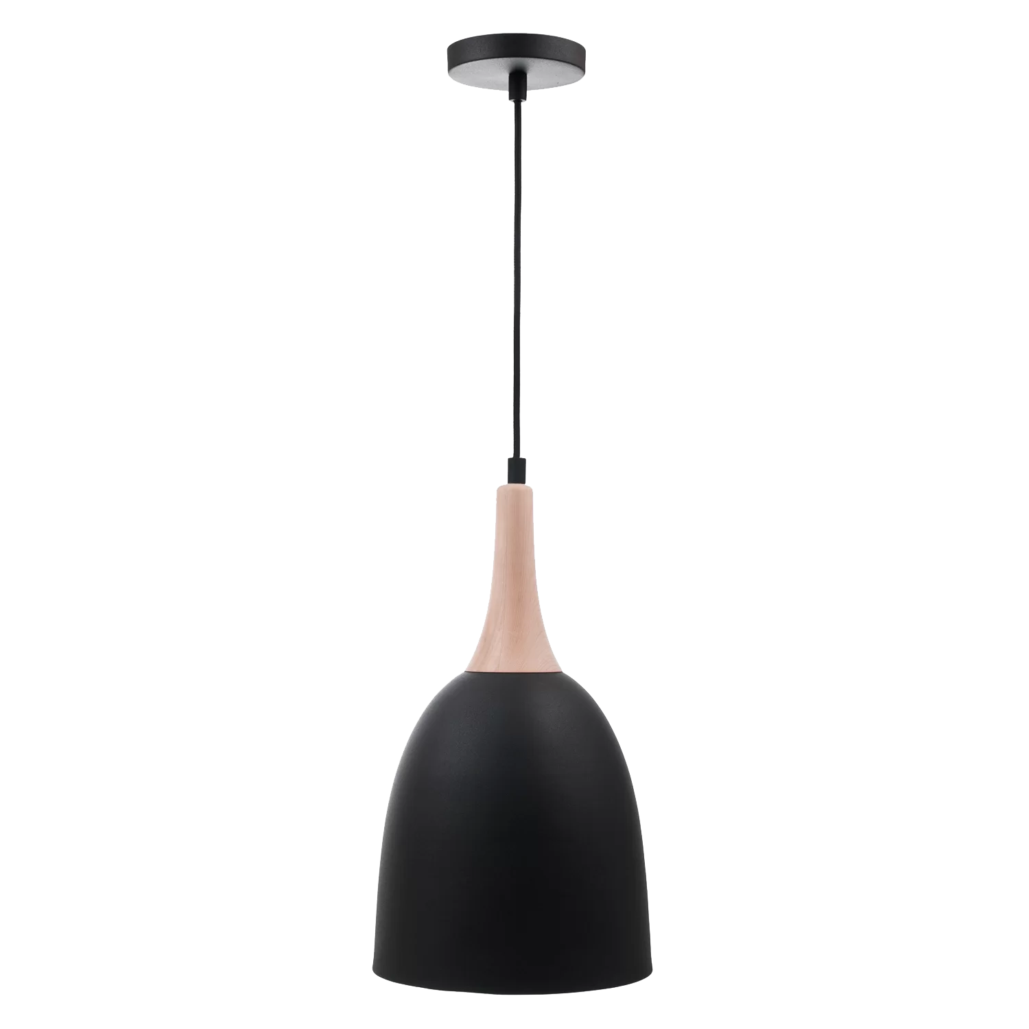 Colgante Maryland. Acero terminación con pintura en polvo termoconvertible poliéster, combinado con madera de lenga natural. Portalámpara E27. Cable textil de 1,5 metros.