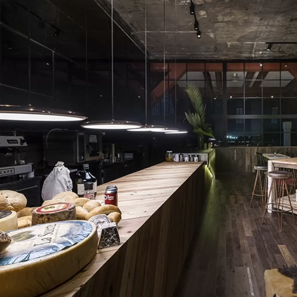 Matiz, es un colgante decorativo de diseño ultra fino. Alta luminosidad, instalación sencilla. Distribución de luz simétrica-directa. Estructura construida en aluminio. Difusor opal de alto rendimiento PPMA. Terminación color negro o cobre.