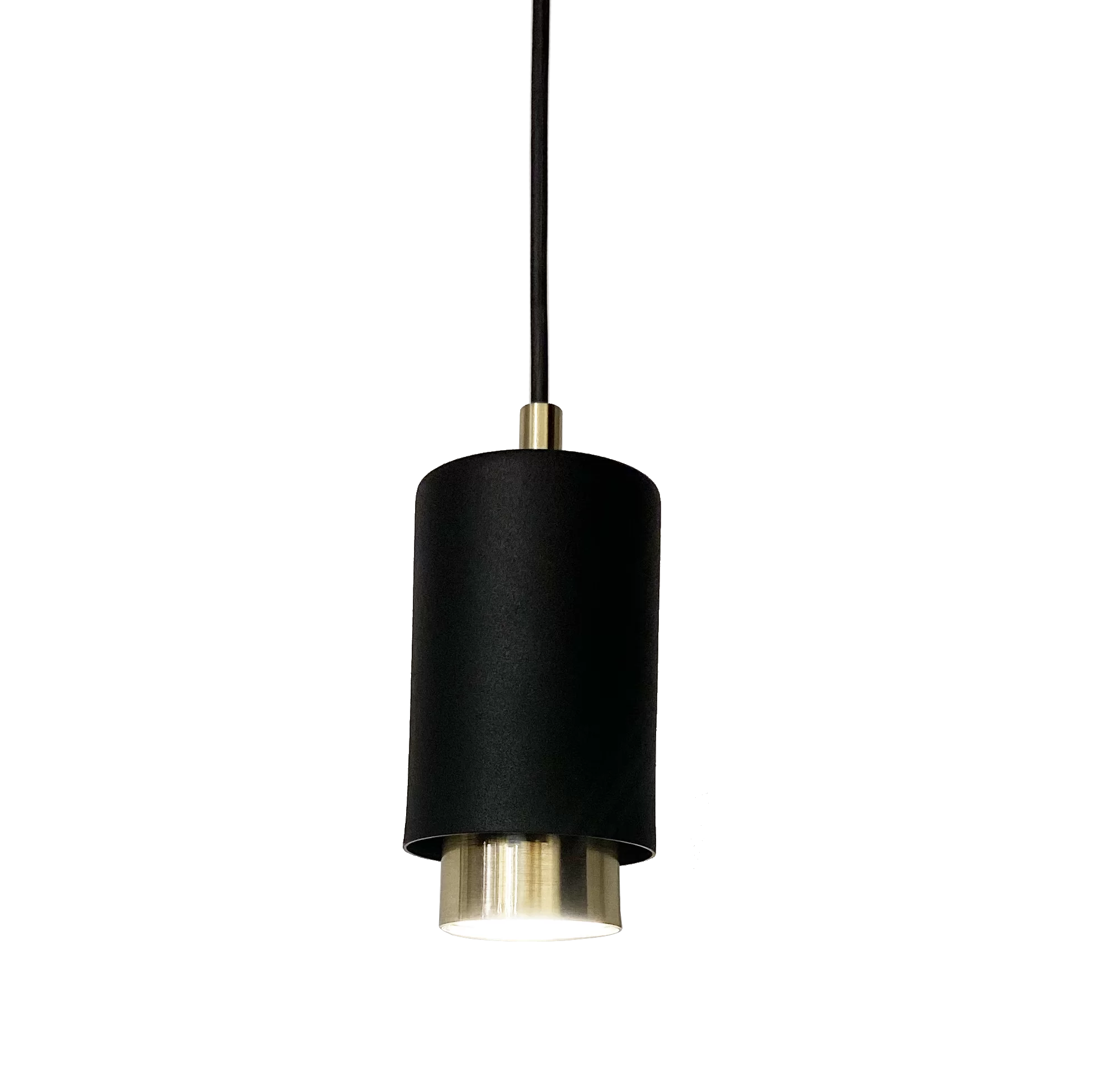 Colgante Núcleo. Luminaria colgante de estilo moderno fabricada en metal, disponible en bronce o plátil, combinable con blanco o negro.