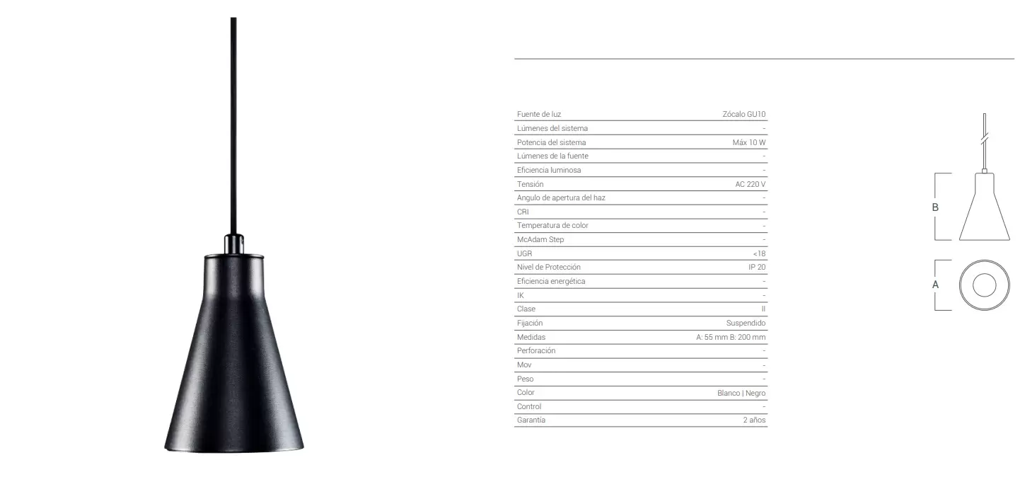 - Portalámpara: 1 lámpara GU10