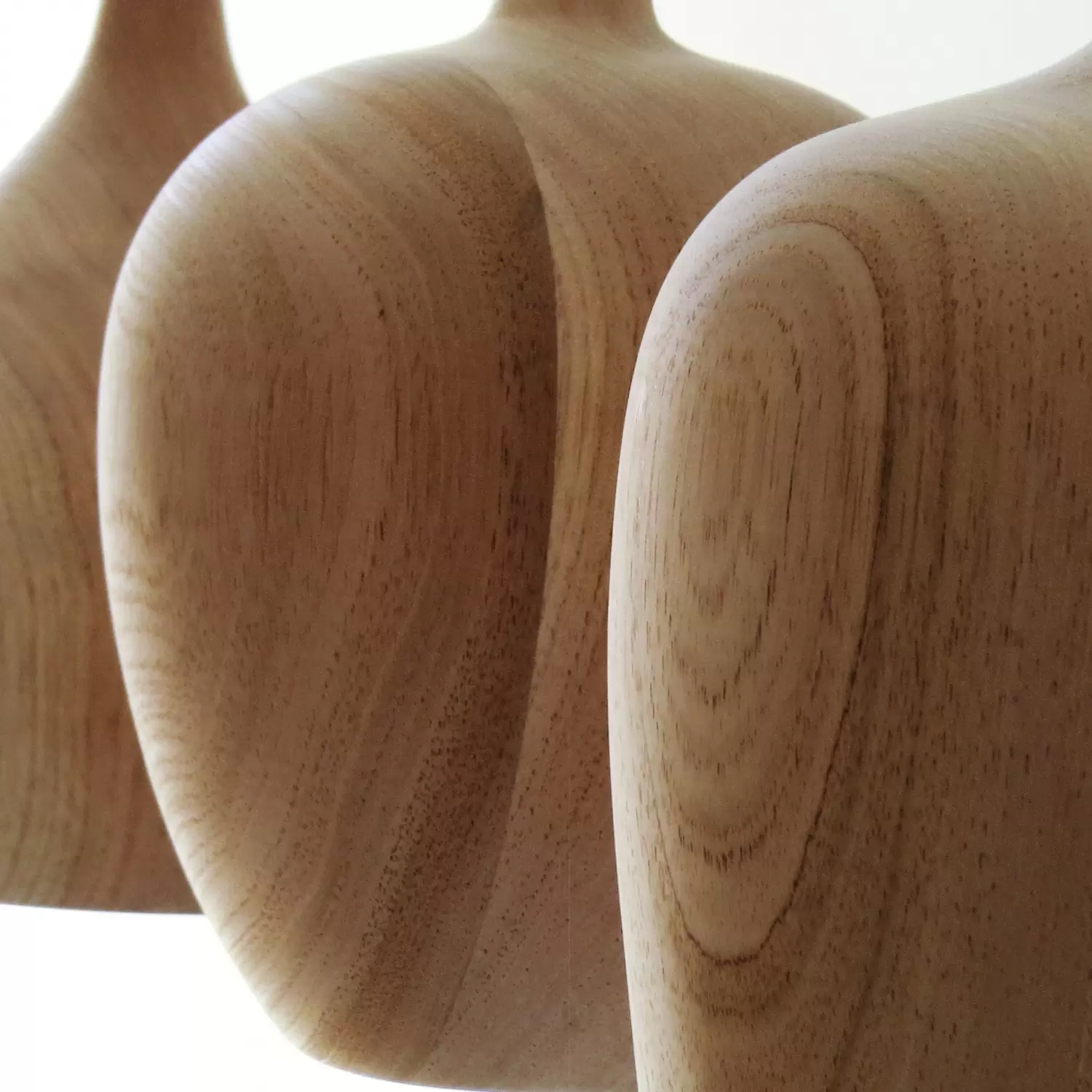 Colgante Ovata es una luminaria de madera torneada a mano de estilo nórdico disponible en color natural o negro.