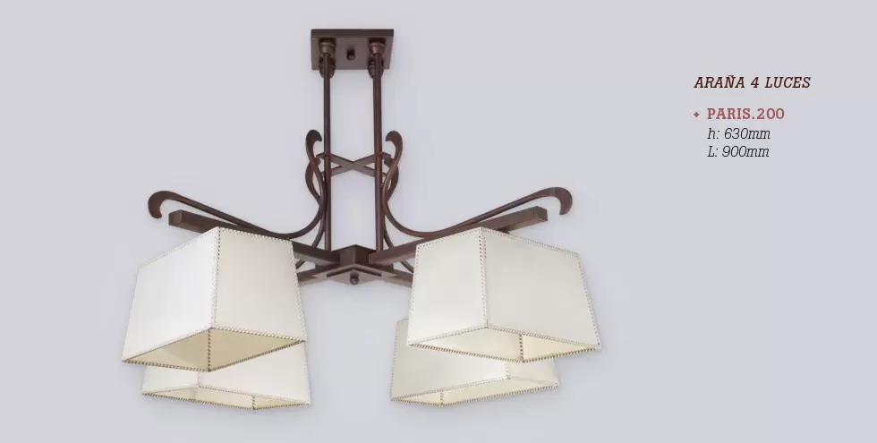 El colgante París es una lámpara de cuatro luces, estilo vintage, disponible en color marrón. Adaptable a todo tipo de ambiente.