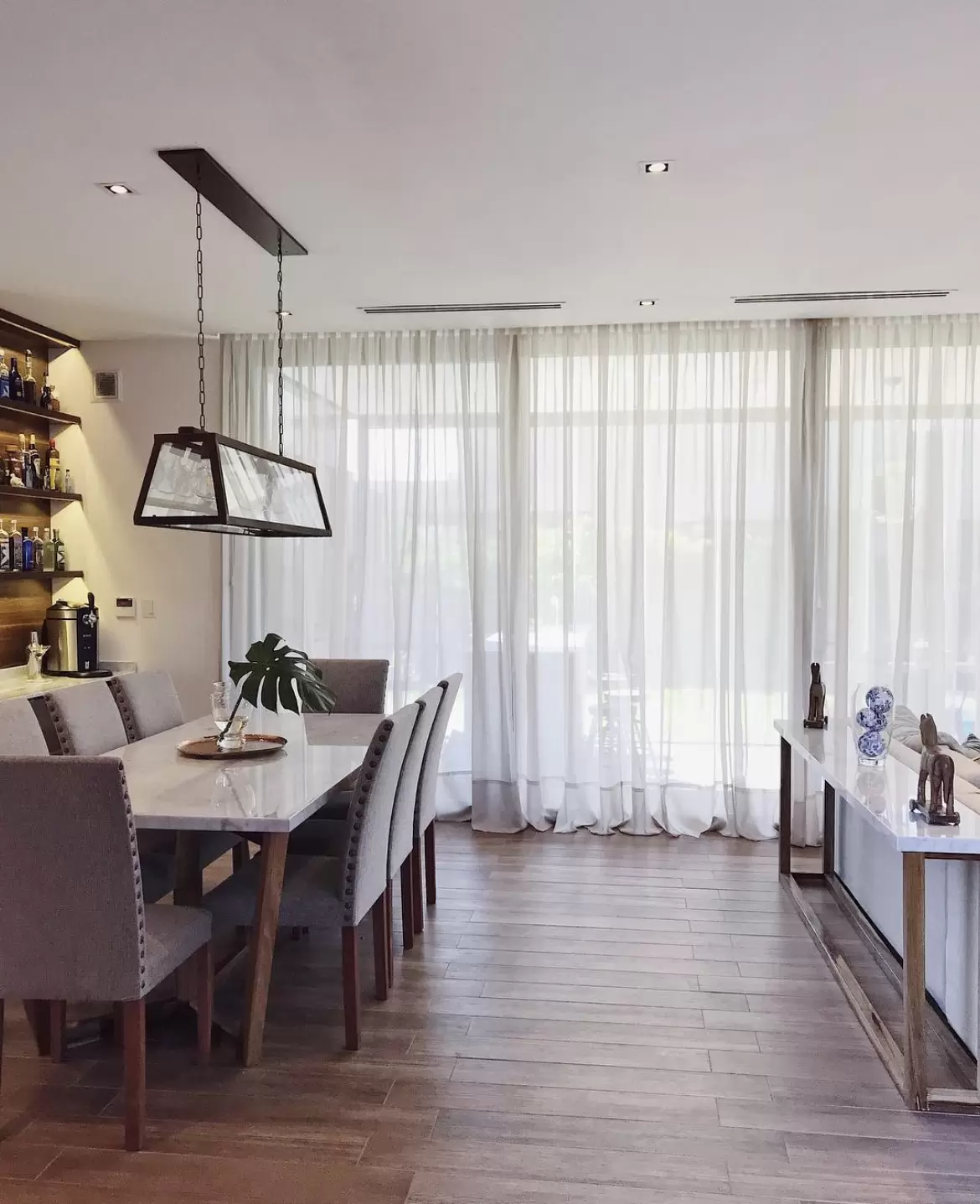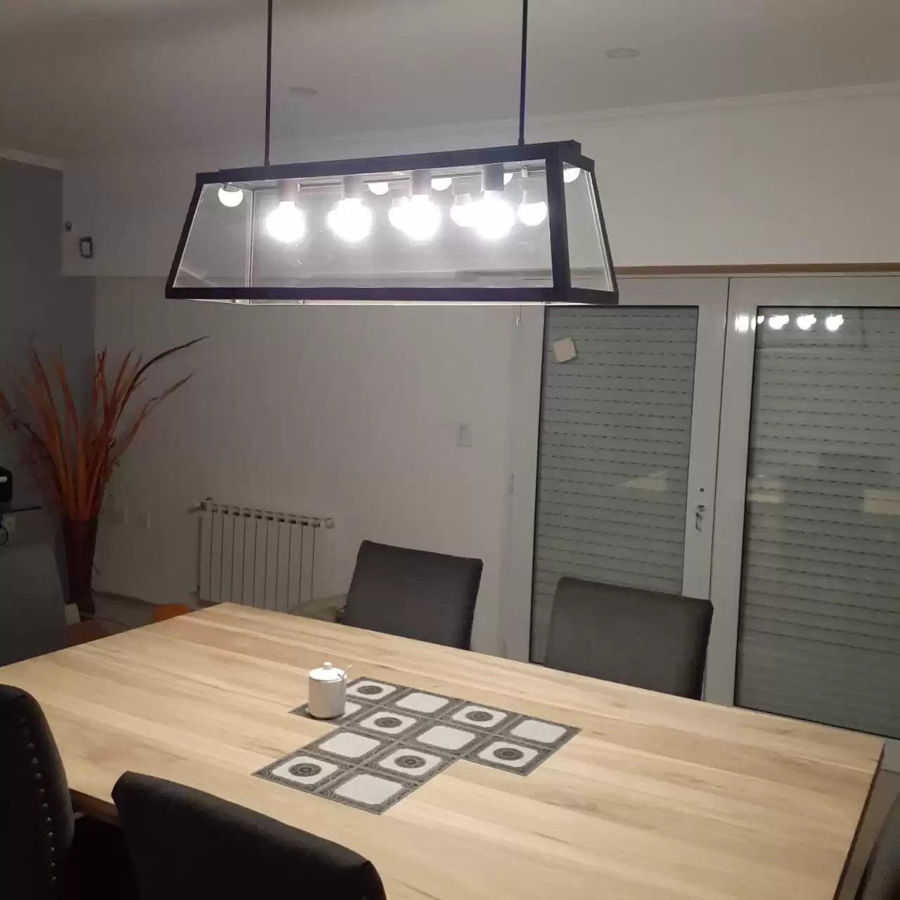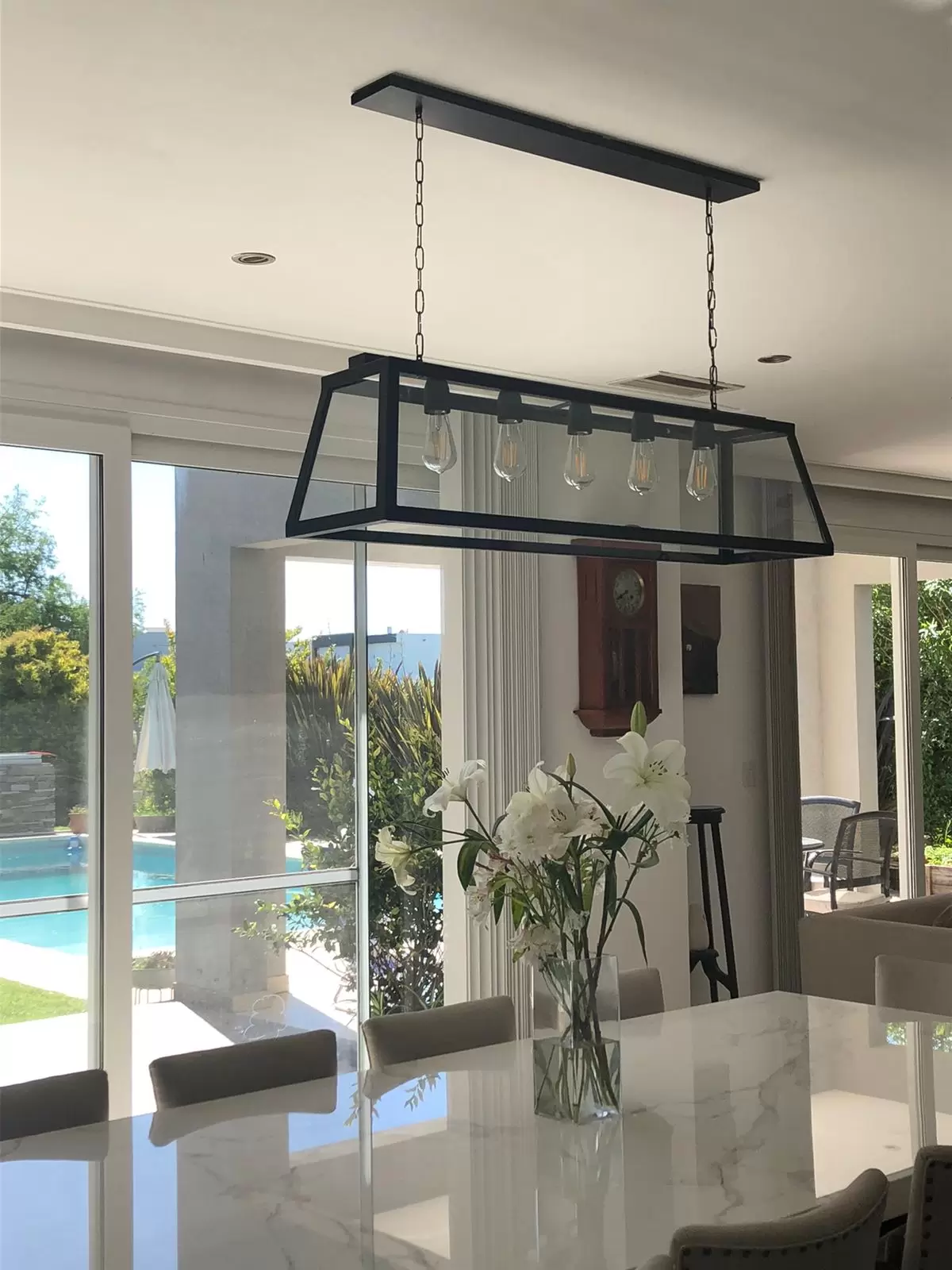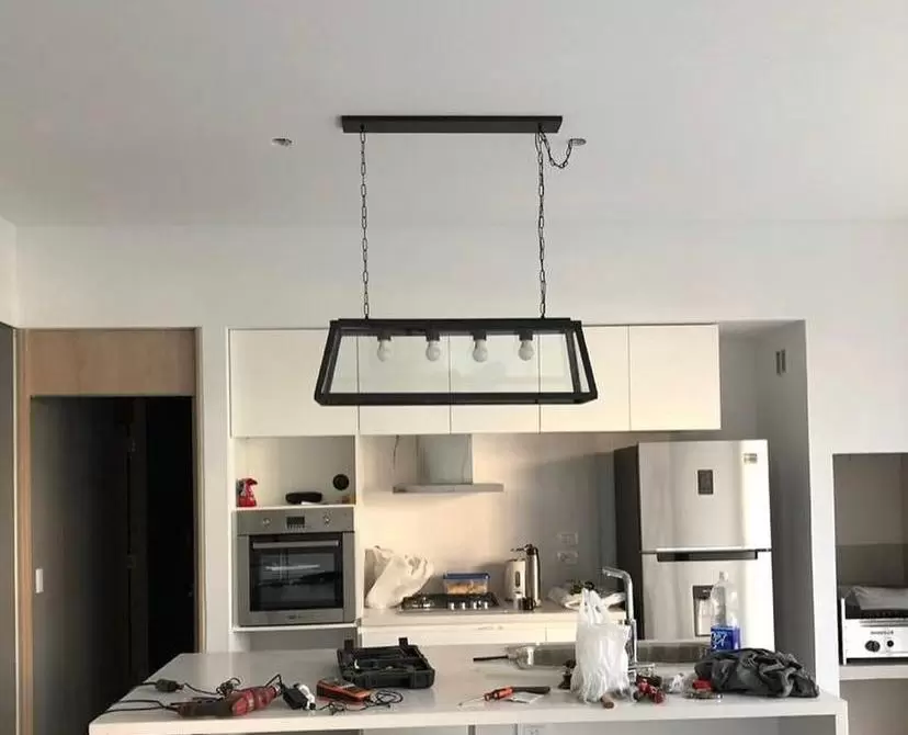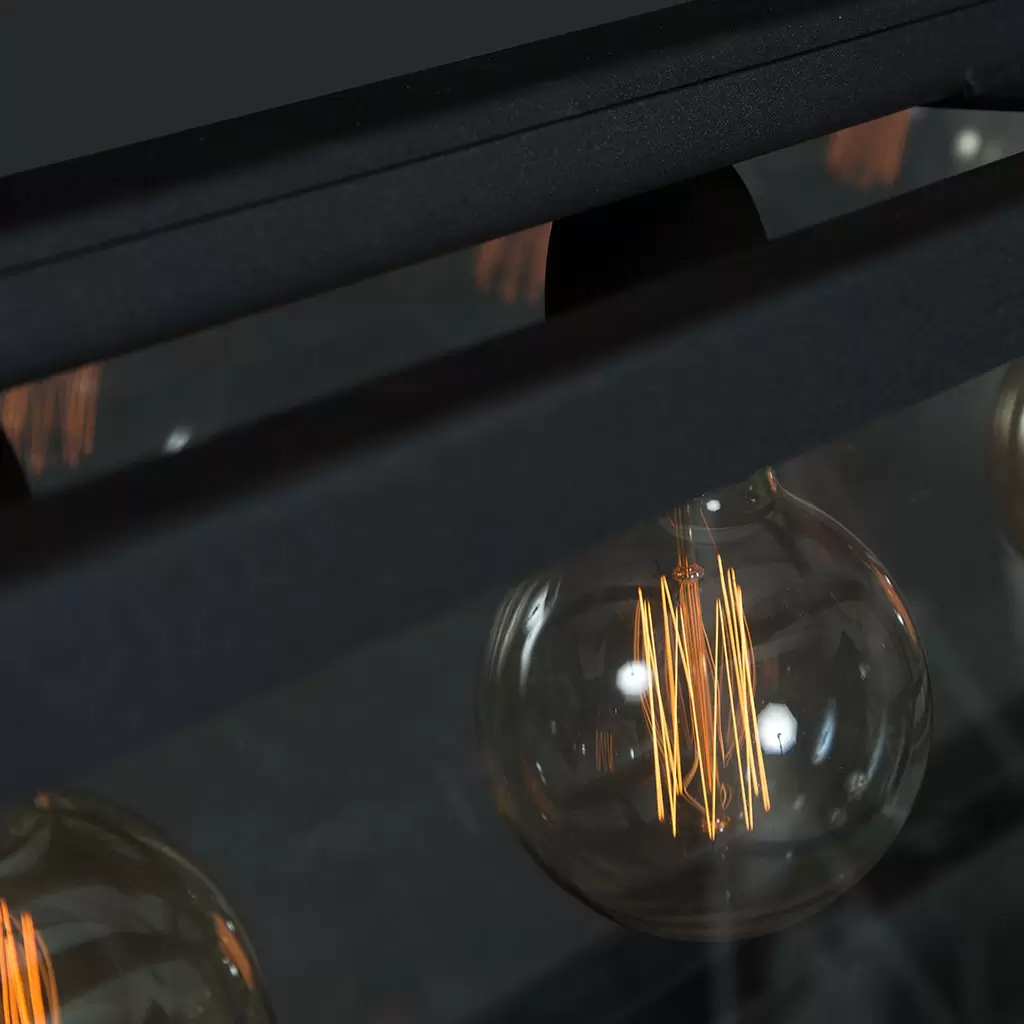 Colgante Pool. Lámpara colgante rectangular de estilo moderno, de una, cuatro, cinco o seis luces apto LED en color negro, blanco u óxido.