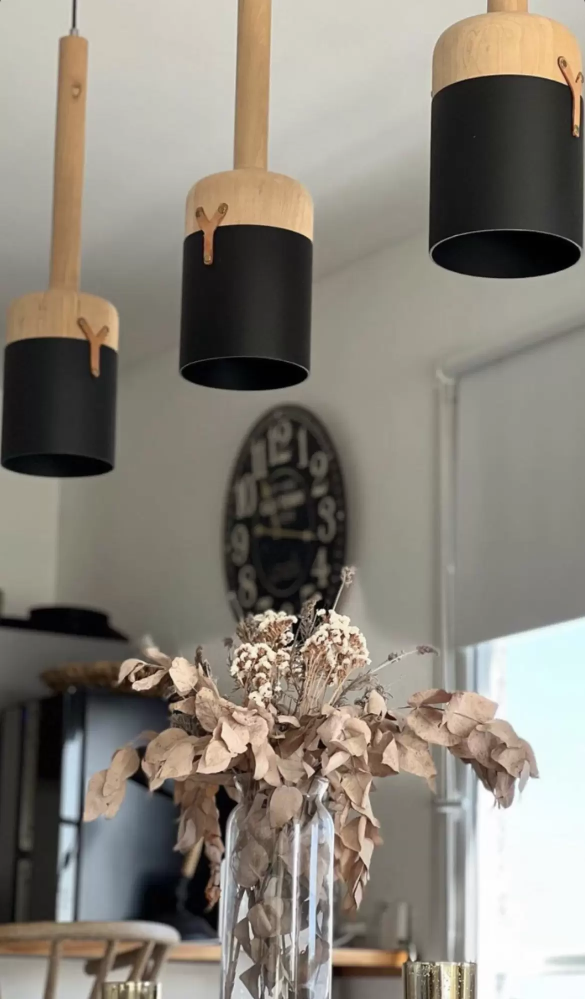 - Color: Madera natural lenga o habano con tulipa en negro o blanco