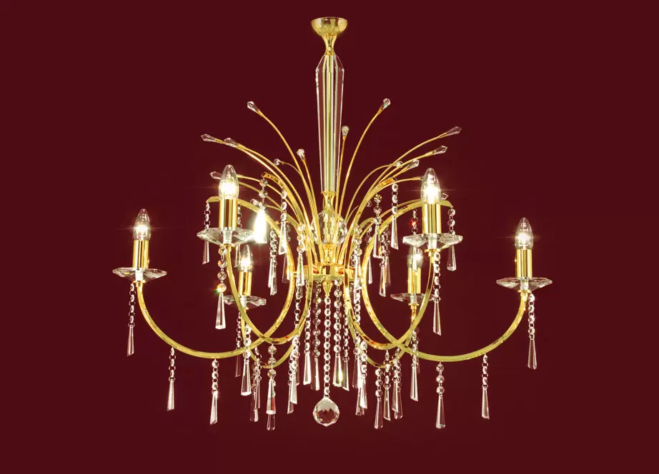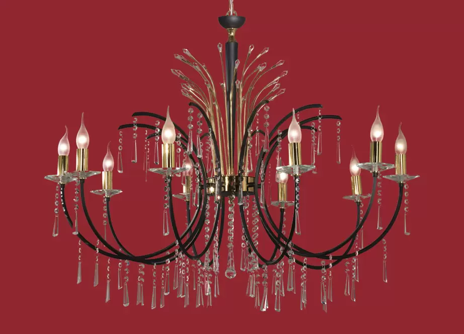 - Color: Acabado cromo, bronce o negro con bronce, con cristales y caireles transparentes.