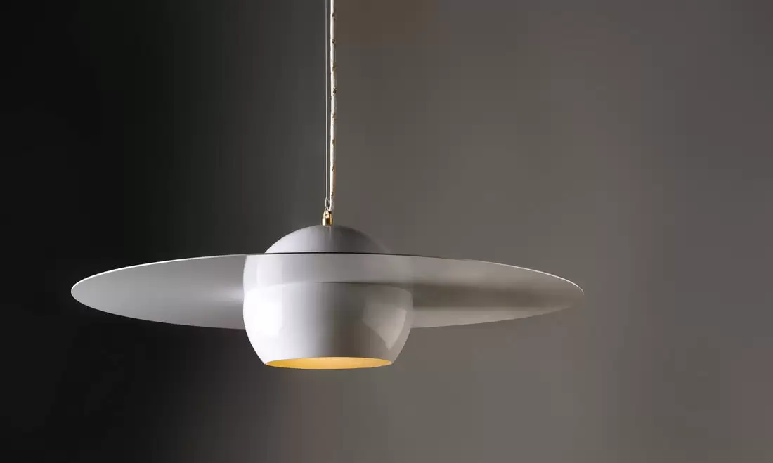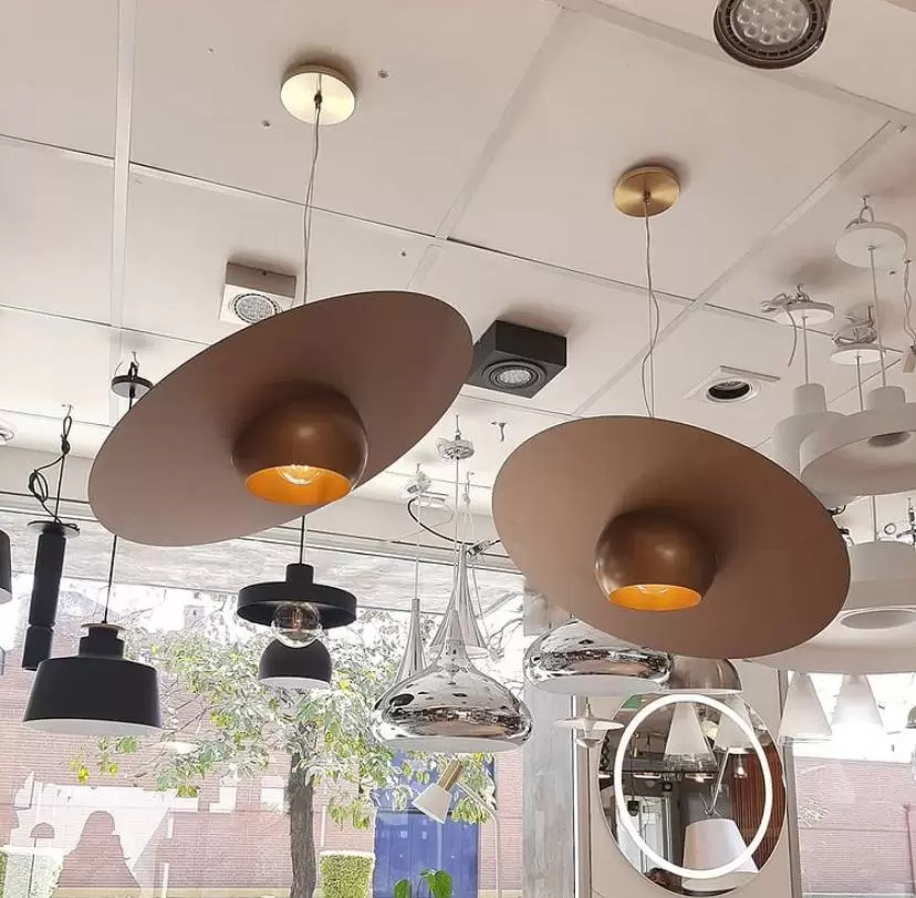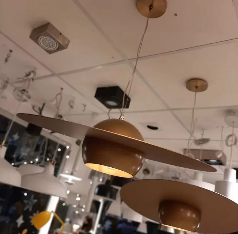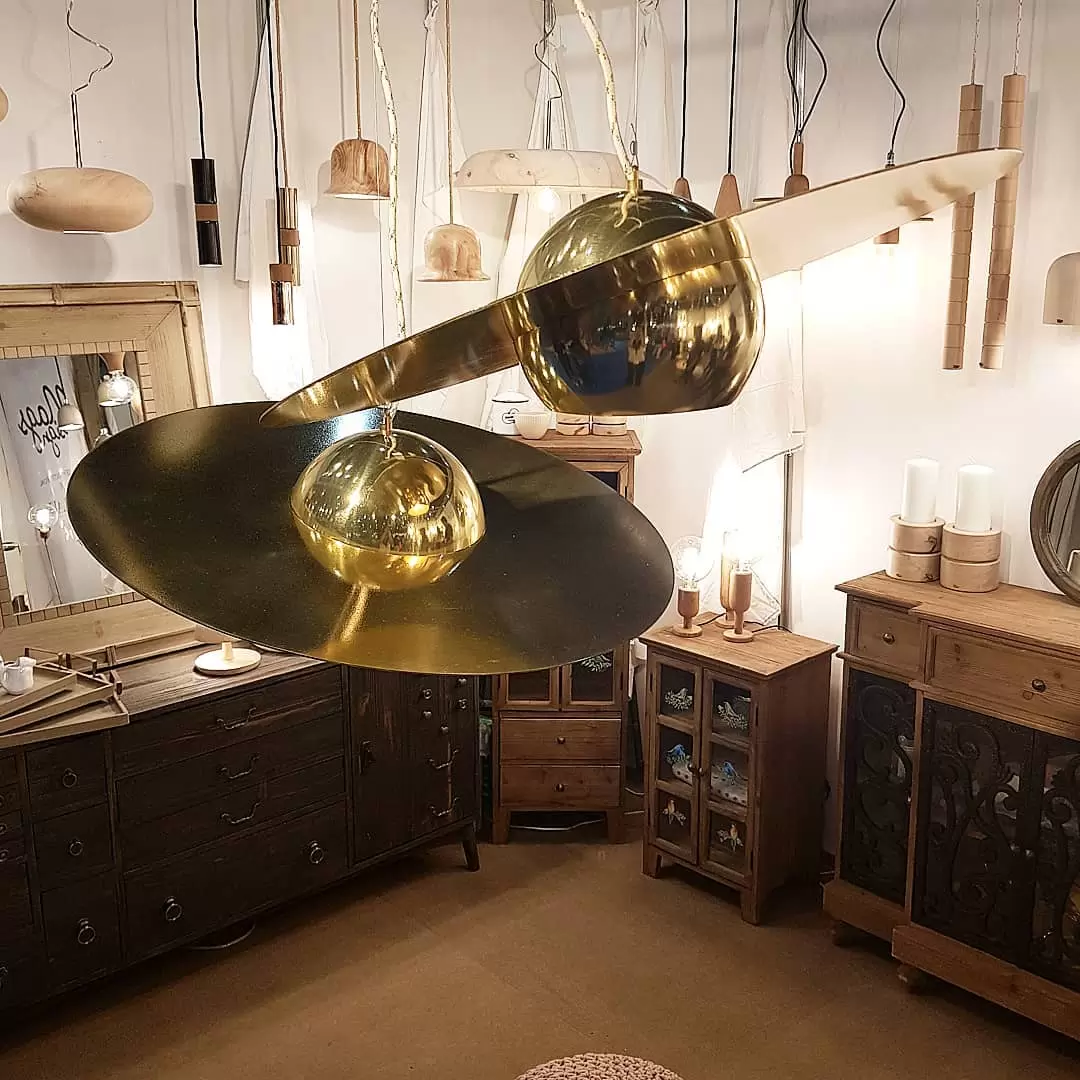 Colgante Saturno es una lámpara de 3/4 de esfera con disco intermedio apto para una lampara LED.