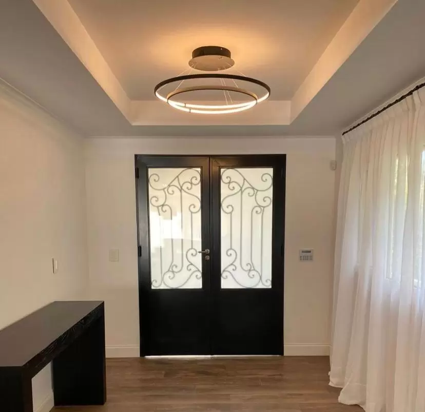 Colgante Saturno doble es una lámpara ultra delgada construida en aluminio que ilumina desde su interior. Artefacto super personalizable en su color de led, largo de tensores, dimerización y color del artefacto.
