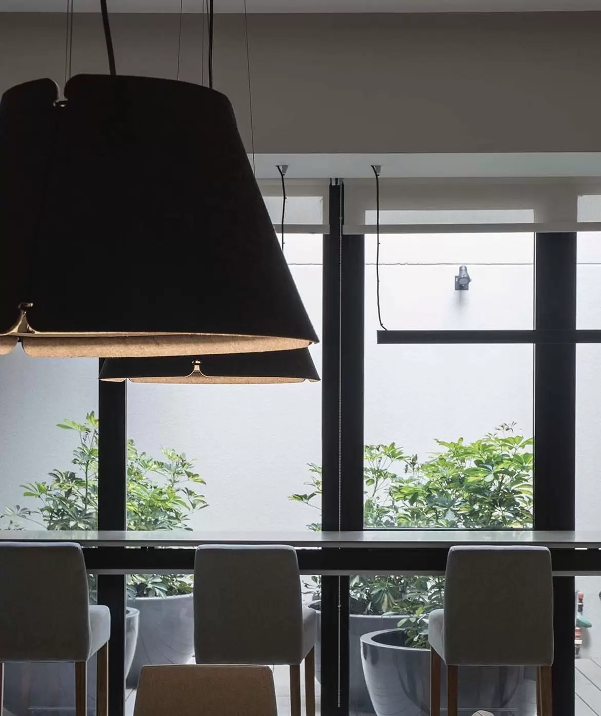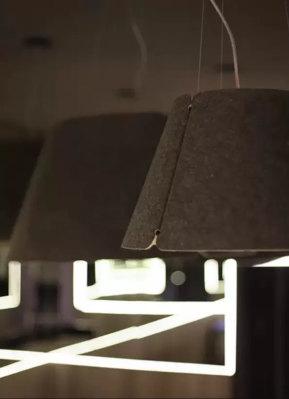 Colgante Shade es una lámpara colgante circular ideal para grandes espacios, hogares o comercios. Disponible en dos tamaños y dos materiales distintos.