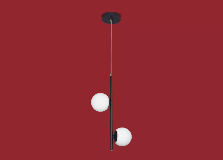 El colgante Texas Doble es una lámpara de uso interior de dos luces, la cual viene en color negro con detalles en bronce, o en acero