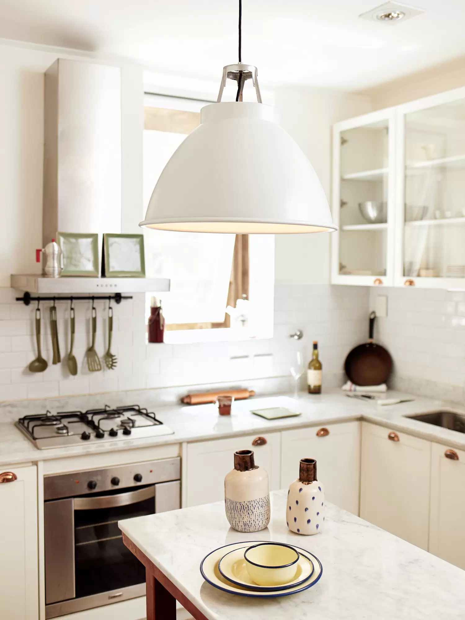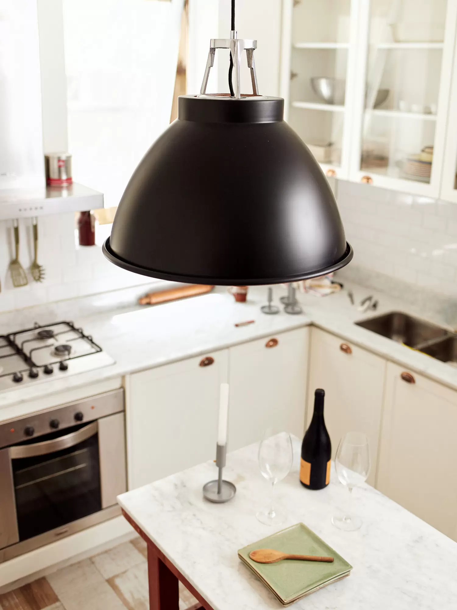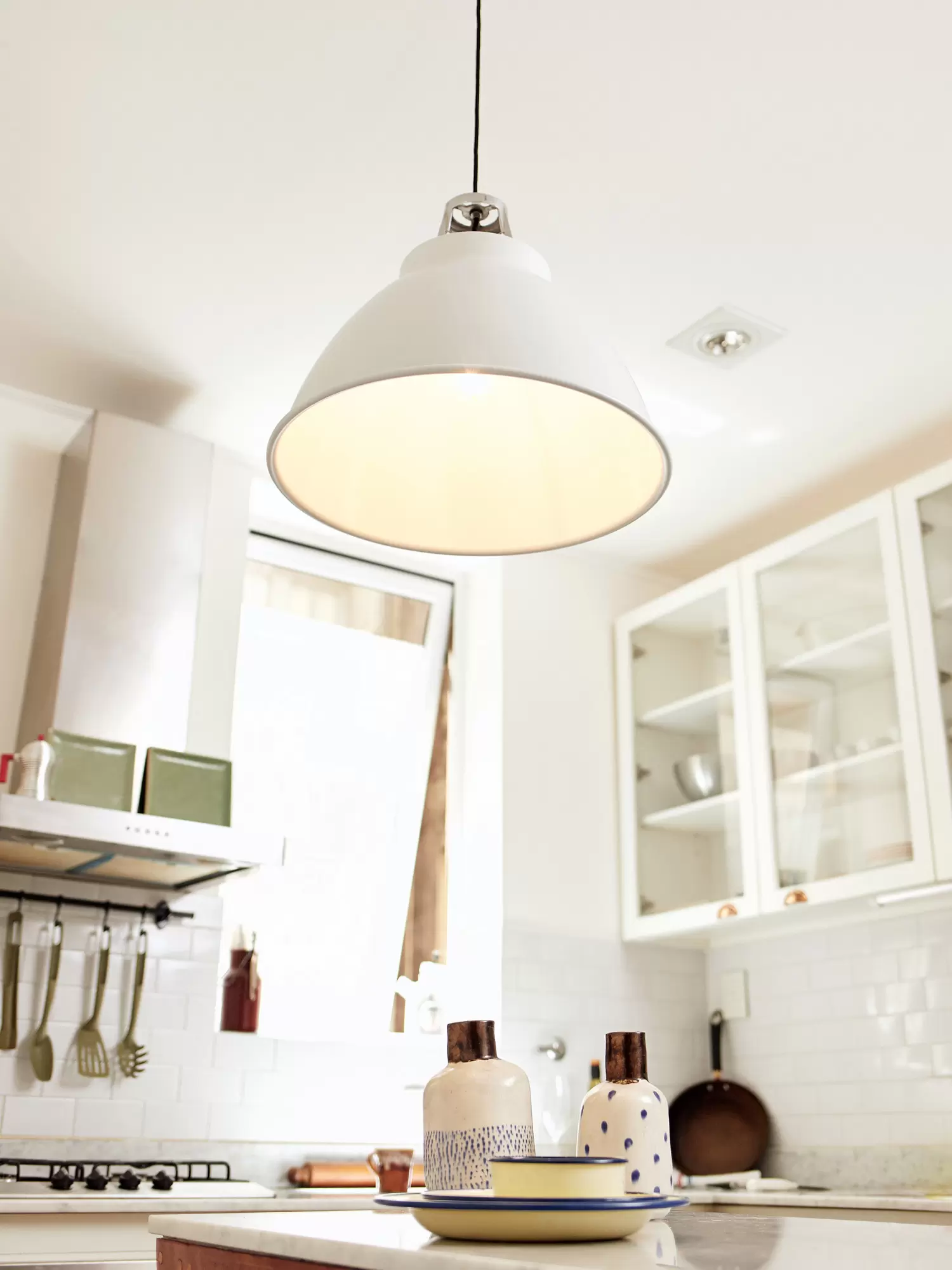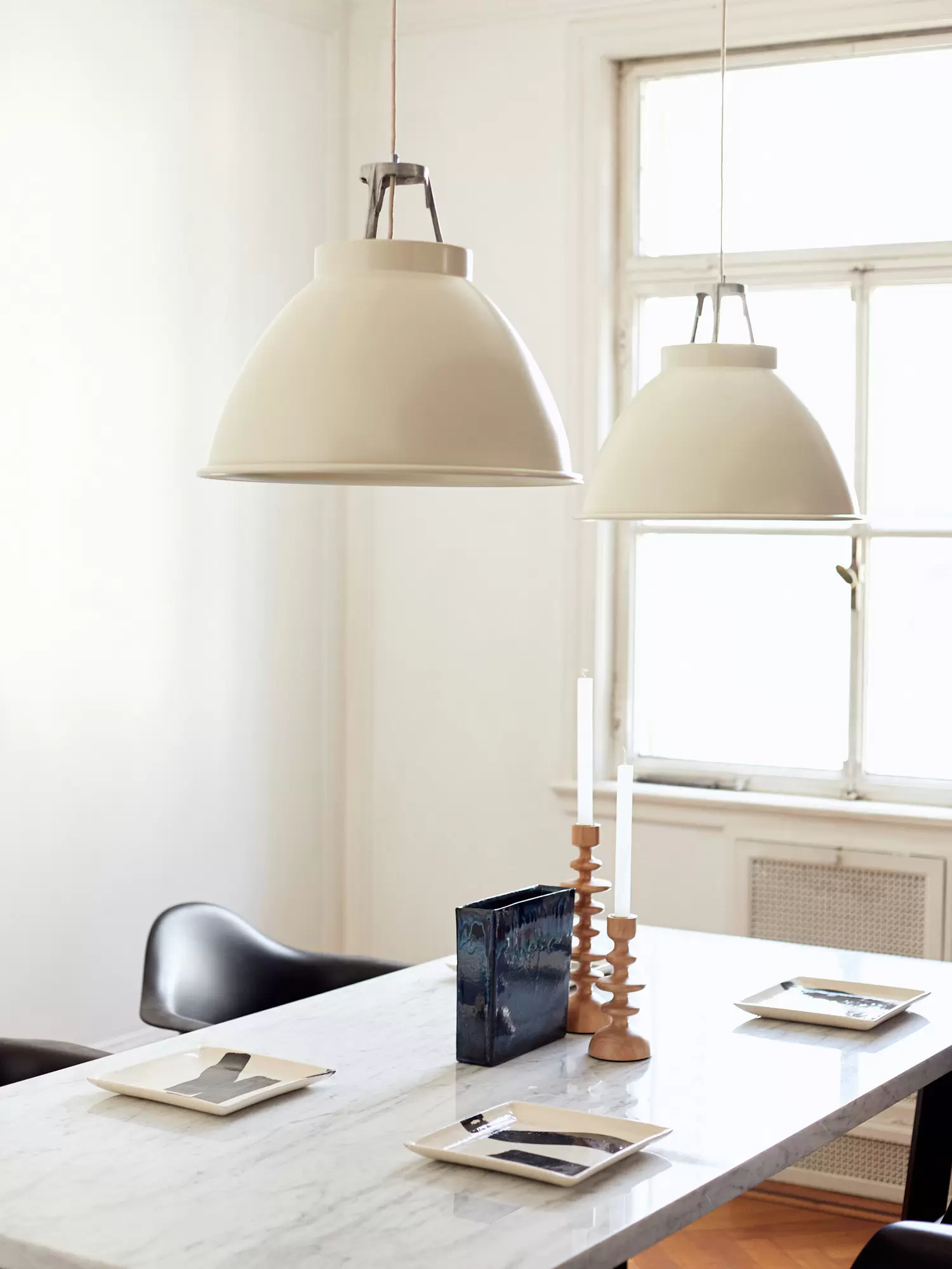 Tom es un colgante de estilo industrial, con un sobrio y sofisticado diseño y variación de colores que lo convierten fácilmente adaptable para cualquier tipo de ambiente. Está disponible en color beige, negro, blanco, gris, amarillo y rojo. Viene con una pieza de aluminio que se encastra directamente en la parte superior del colgante.