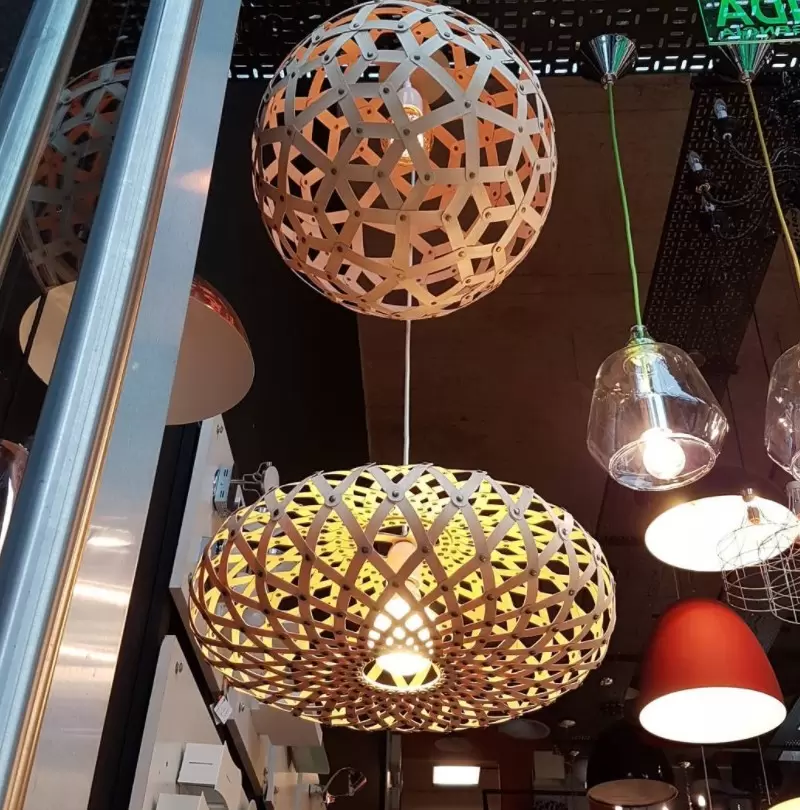 El colgante Trama Mandala es una luminaria fabricada en madera laminada de guatambú, de estilo rústico, que se adapta fácilmente a todo tipo de ambiente. Disponible en tres tamaños: small, medium y large.
