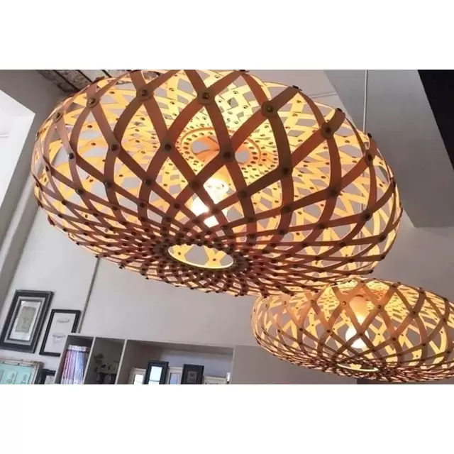 El colgante Trama Oval Flat es una luminaria fabricada en madera laminada de guatambú, de estilo rústico, que se adapta fácilmente a todo tipo de ambiente. Disponible en dos tamaños: small y large.