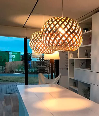 El colgante Trama Oval es una luminaria fabricada en madera laminada de guatambú, de estilo rústico, que se adapta fácilmente a todo tipo de ambiente.