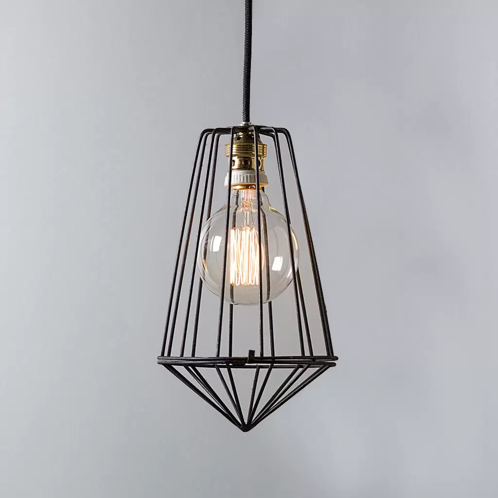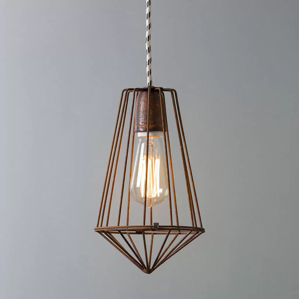 Colgante Urko. Lámpara de alambre metálico para una lampara apto LED de 33cm de atura. Disponible en color negro u óxido.