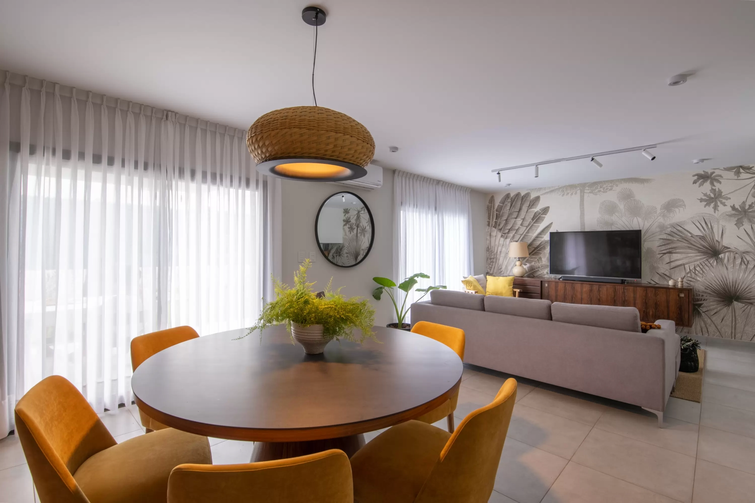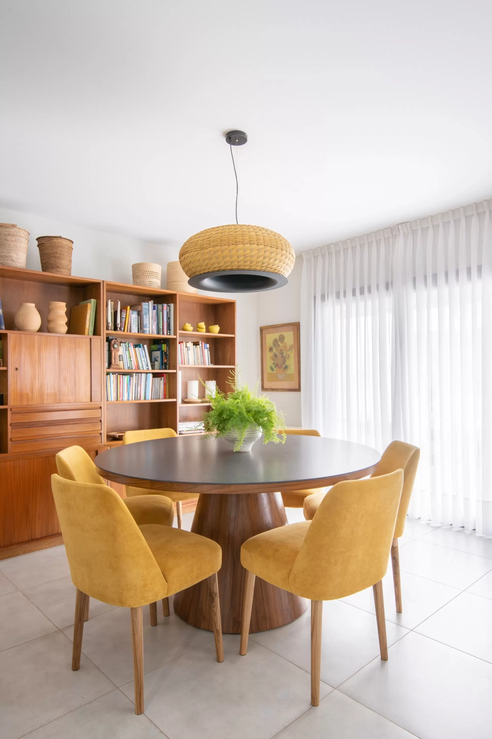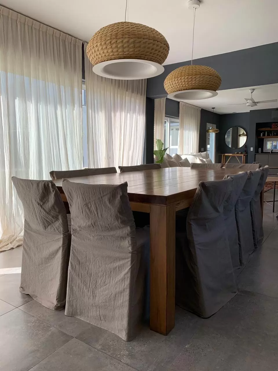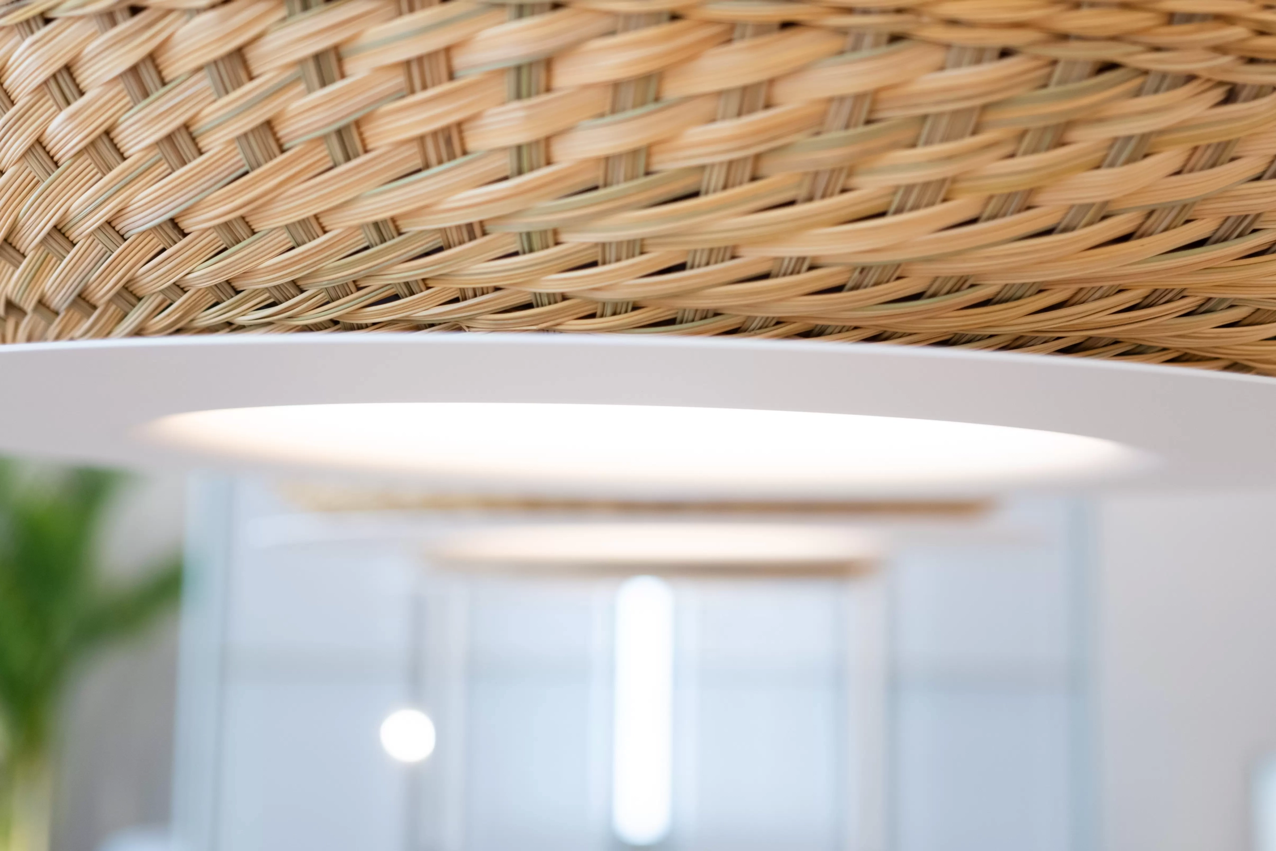 Lámpara de suspensión de luz semi directa. Cuerpo en tejido de fibra natural “simbol” hecho a mano y disco de aluminio. Tensores de acero galvanizado y cable blanco o negro.